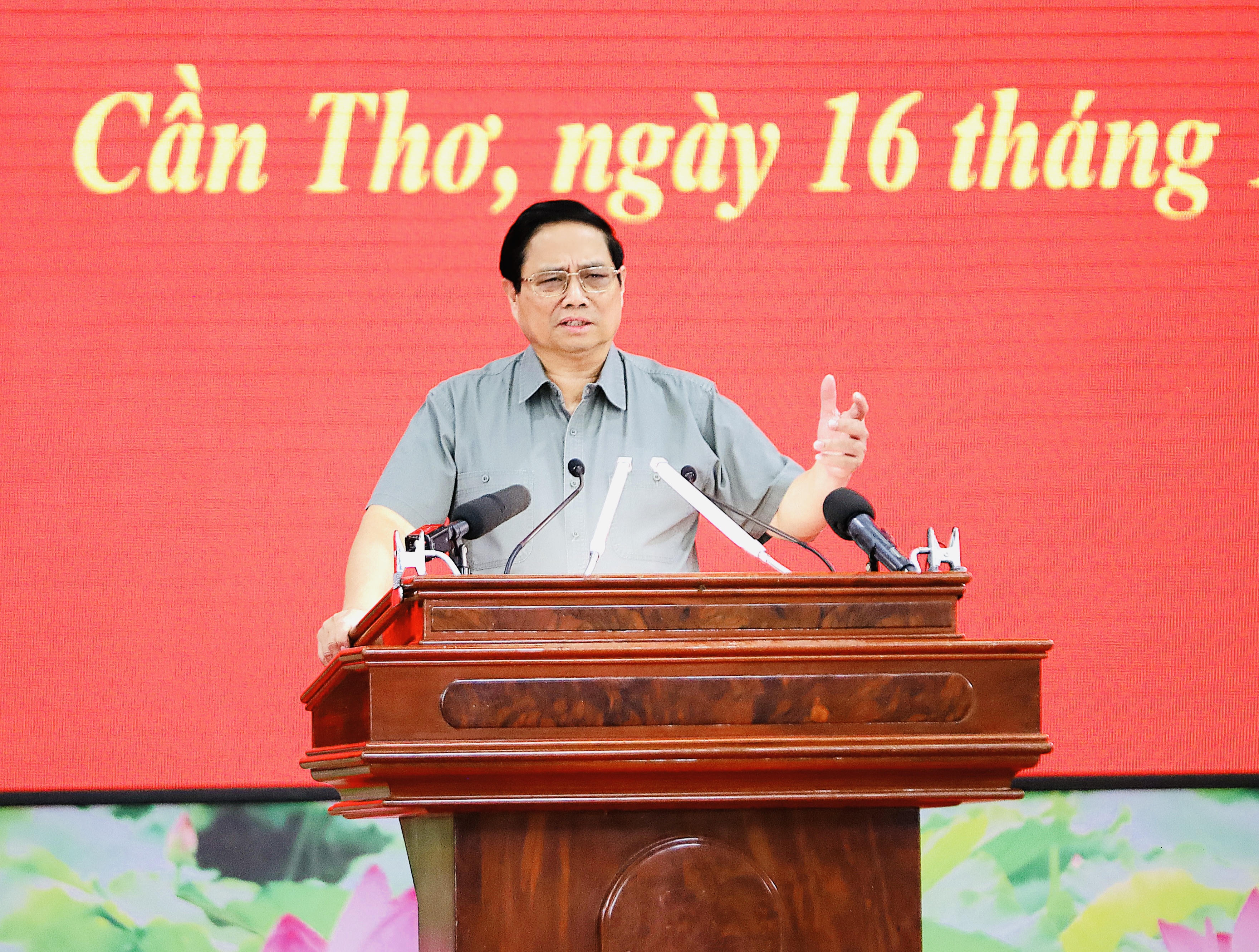 Thủ tướng Chính phủ Phạm Minh Chính phát biểu tại hội nghị Tháo gỡ khó khăn, vướng mắc và thúc đẩy phát triển hạ tầng giao thông khu vực ĐBSCL. |