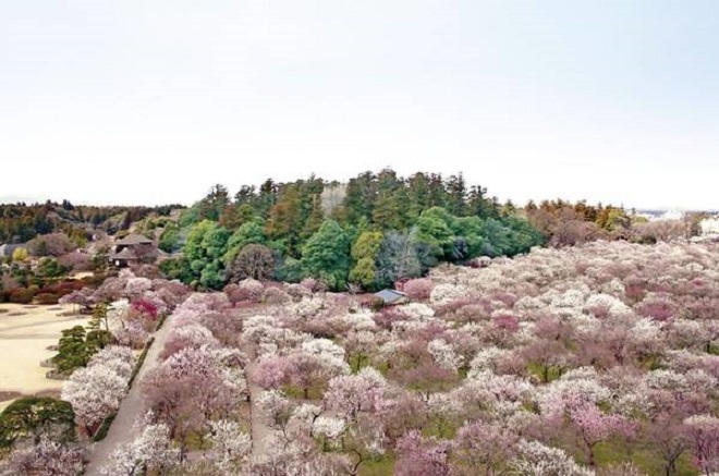 Công viên Kairakuen có diện tích khoảng 300 hecta, đứng thứ 2 thế giới chỉ sau công viên trung tâm tại New York. Tại đây trồng hơn 3000 gốc mơ với hơn 100 chủng loại khác nhau báo hiệu mỗi khi xuân về. Nếu có dịp đi vào khoảng cuối tháng 2 đến cuối tháng 3 thì các bạn sẽ được chiêm ngưỡng, đắm chìm vào sự bao bọc của màu hồng trắng khắp công viên của hoa mơ, đặc biệt là lễ hội Ume Matsuri sẽ diễn ra vào thời điểm đó.