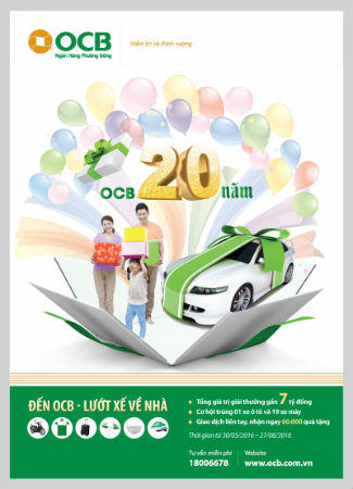 Với hơn 60.000 quà tặng, phần thưởng trị giá gần 7 tỷ đồng, “Đến OCB lướt xế về nhà” sẽ mang đến cho khách hàng những niềm vui, sự may mắn cùng OCB nhân kỉ niệm 20 năm thành lập.
