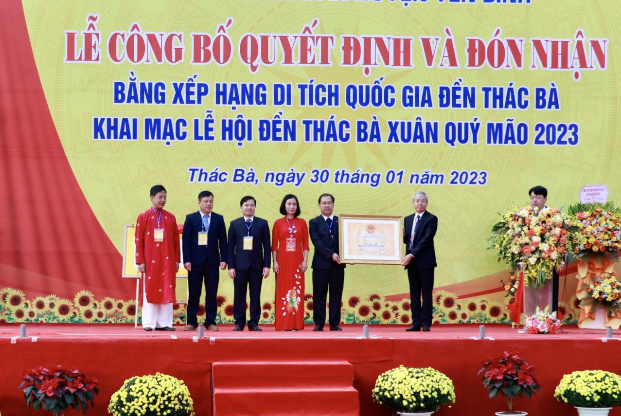 Tại buổi lễ, lãnh đạo Sở VHTT&DL tỉnh Yên Bái đã công bố quyết định của Bộ trưởng Bộ VHTT&DL về xếp hạng Di tích quốc gia Đền Thác Bà.