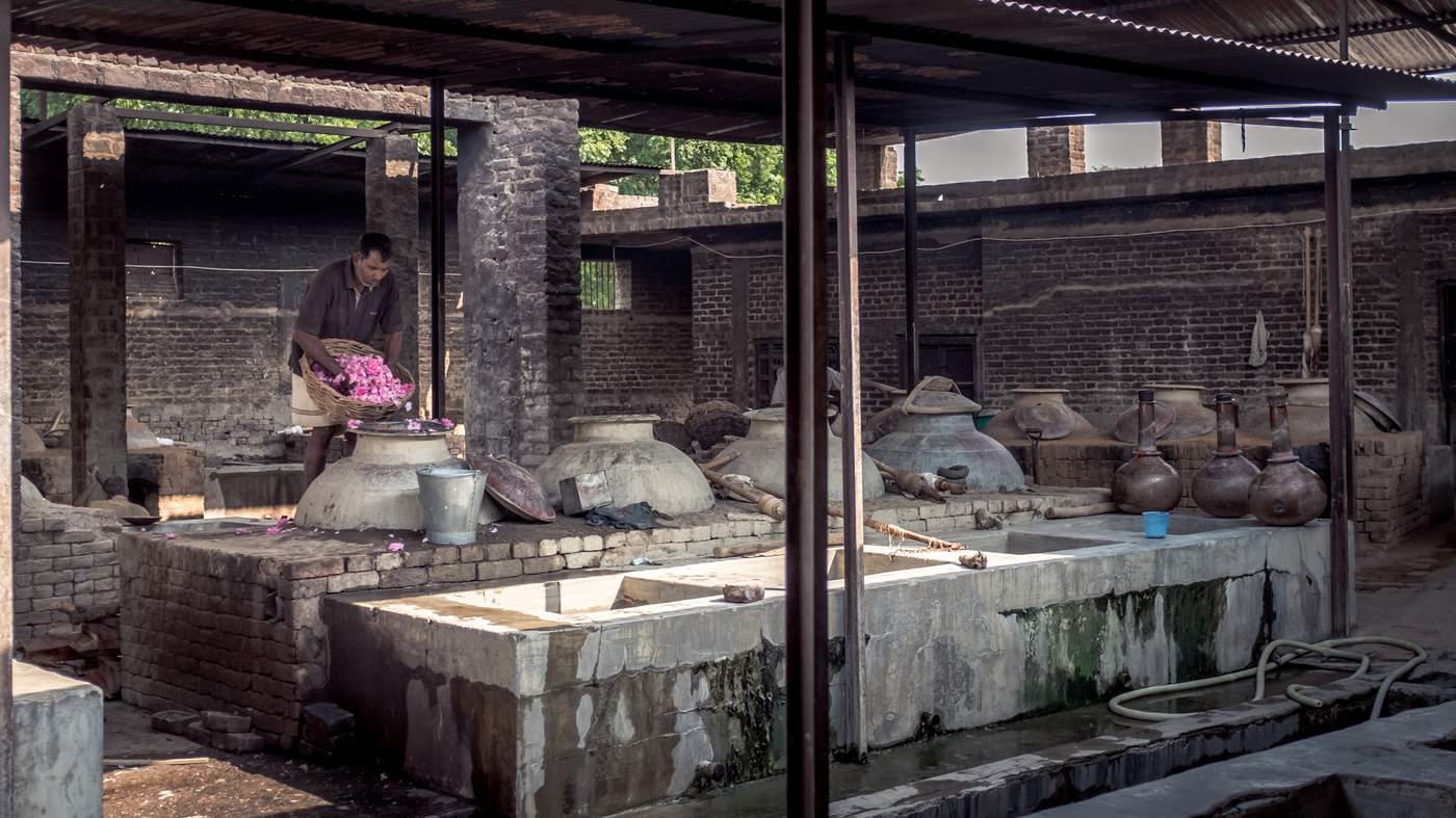 20 năm trước, có khoảng 700 nhà chưng cất nước hoa ở thành phố Kannauj, ngày hôm nay còn không đầy 100. Những nhà xưởng chưng cất các loại nước hoa dựa trên dầu hoa, từ những loài hoa như hoa hồng, hoa nhài và hoa móng tay thông qua một kỹ nghệ chưng cất bằng hơi nhiệt. Chính quy trình sản xuất cầu kỳ và tinh xảo này mà làm gia tăng mùi hương của nước hoa, nhưng cũng tốn kém thời gian và cả nguồn lực để làm ra chúng. Phải cần tới 4 tấn hoa hồng tươi (hái bằng tay) cũng chỉ để sản xuất ra 1 kg tinh dầu hoa.