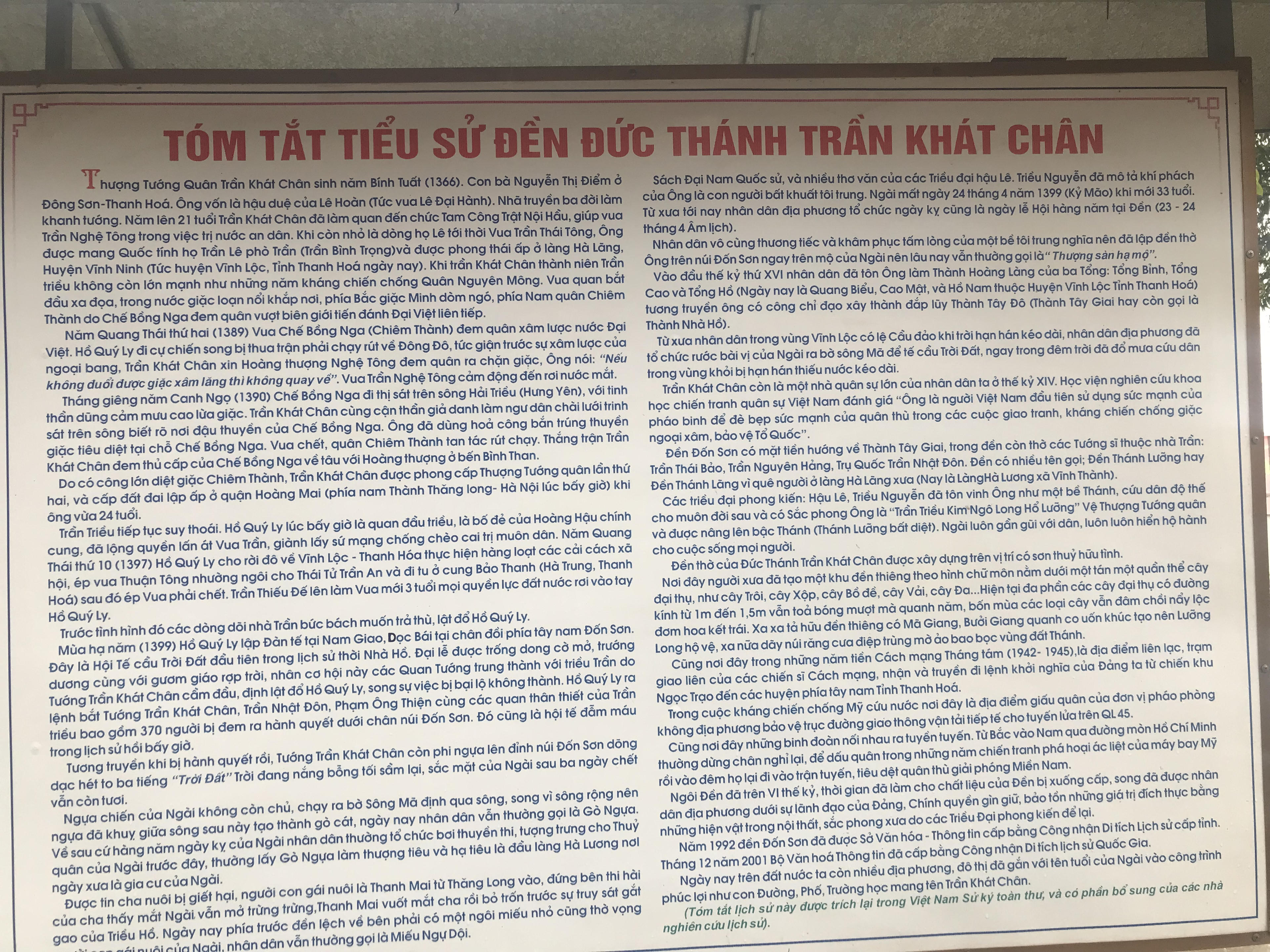 Nằm về phía Đông Bắc của dãy núi Đốn Sơn, cách Thành Nhà Hồ khoảng hơn 2km, Di tích lịch sử cấp quốc gia – Đền thờ Trần Khát Chân tọa lạc dưới chân núi Đốn Sơn (thuộc thị trấn Vĩnh Lộc) là một địa chỉ văn hóa tâm linh đặc sắc trên miền đất xứ Thanh địa linh nhân kiệt.