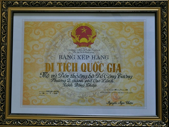Ngày 8/7/2019, Bộ Văn hóa, Thể thao và Du lịch đã có Quyết định xếp hạng mộ và đền thờ ông bà Đỗ Công Tường là di tích lịch sử-văn hóa quốc gia. Và ngày 10/7 vừa qua, UBND thành phố Cao Lãnh, tỉnh Đồng Tháp đã tổ chức lễ giỗ ông bà Đỗ Công Tường lần thứ 199.