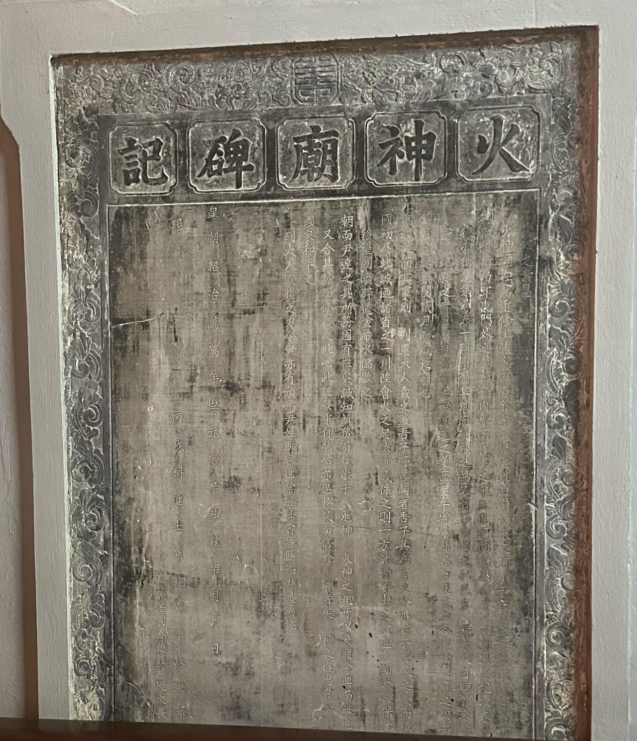 Một bia đá cổ ghi lịch sử ngôi đền. |