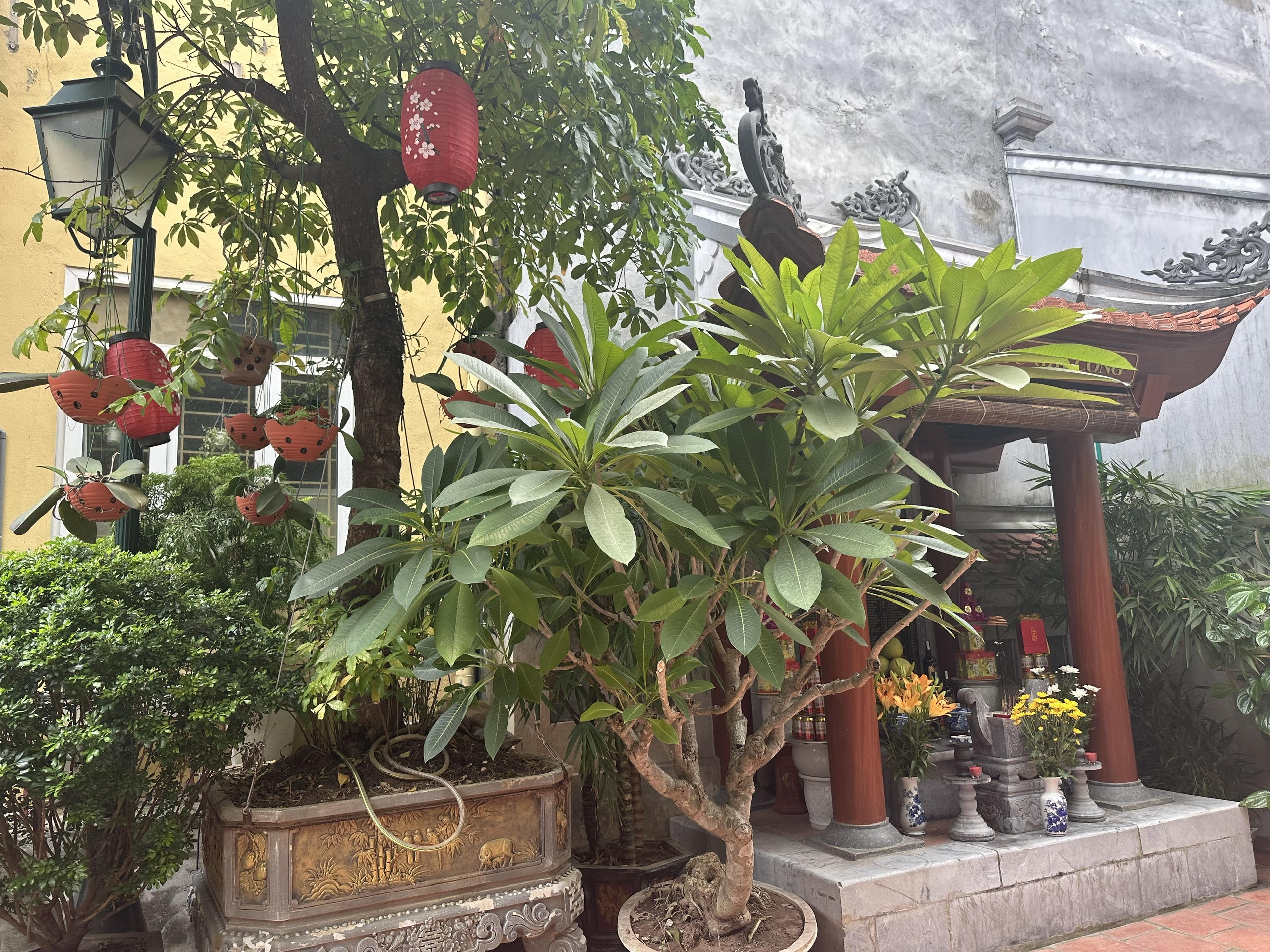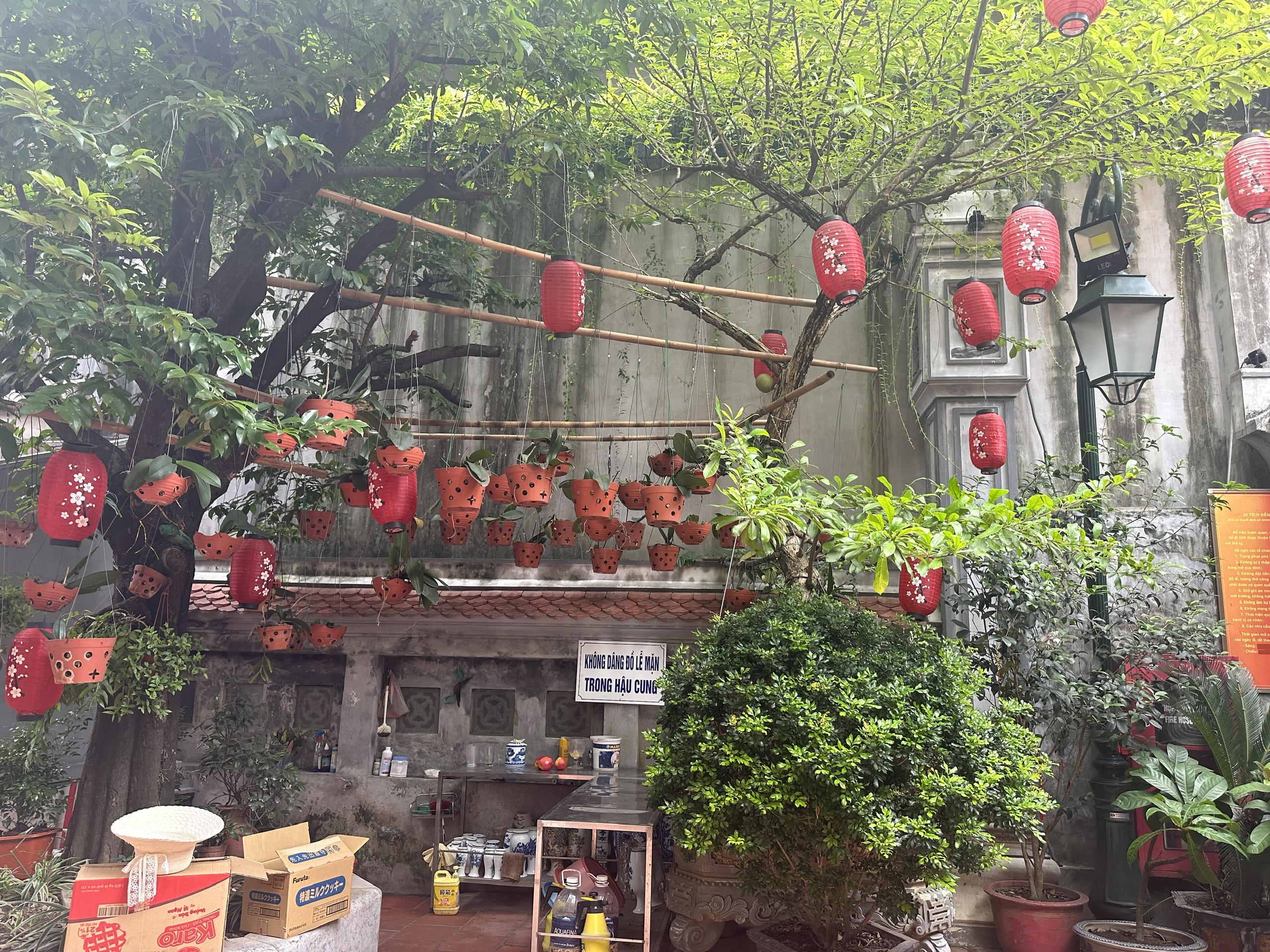 Khoảng không gian xanh trước sân đền. |