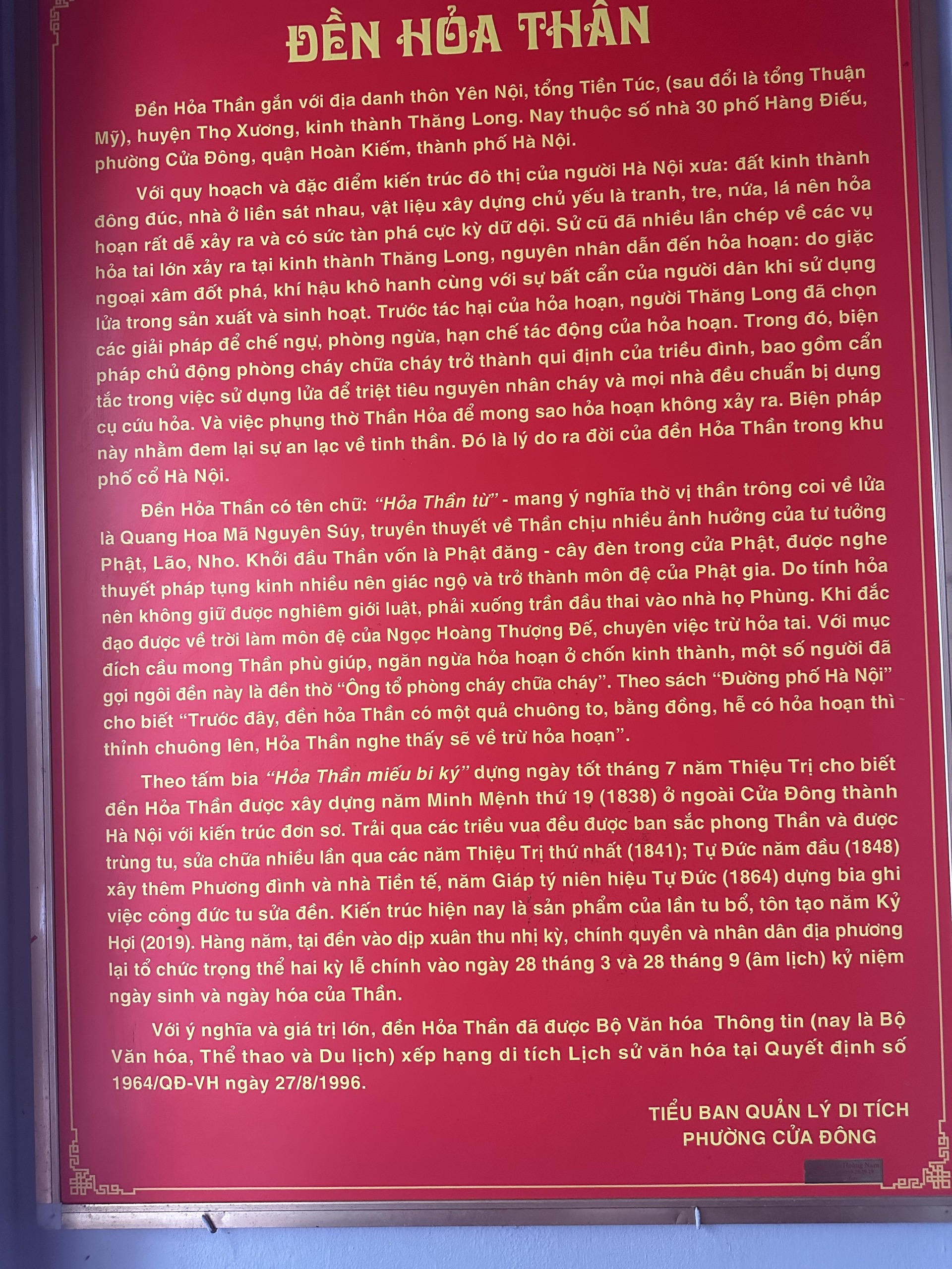 Lược sử đền Hỏa Thần. |