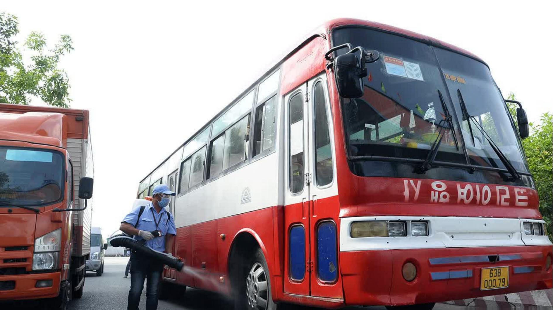 Phun khử khuẩn các phương tiện trong khu công nghiệp tại Tiền Giang |