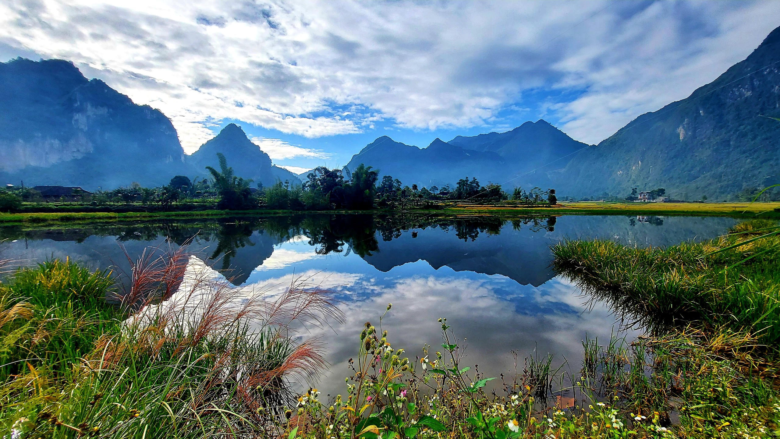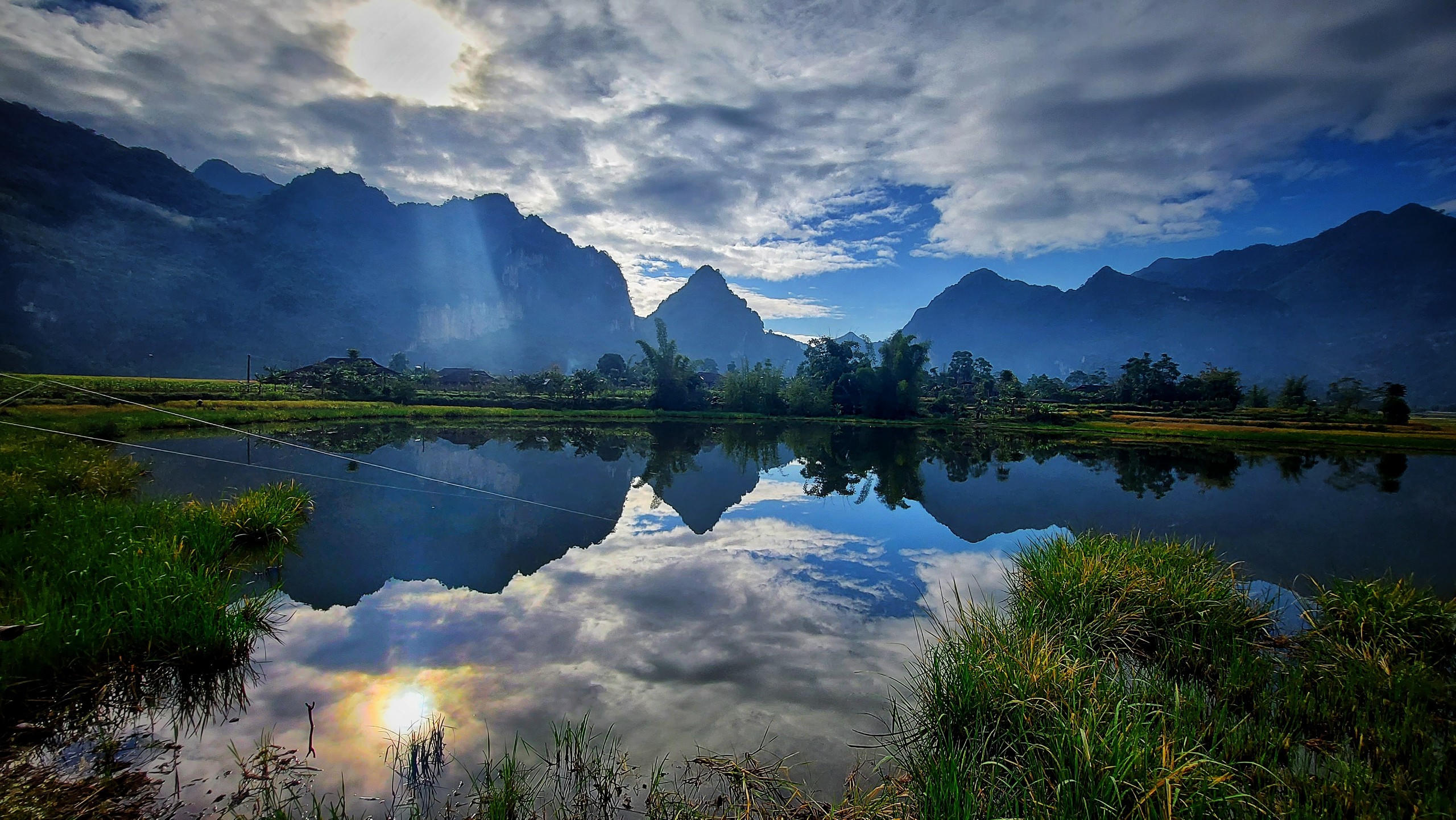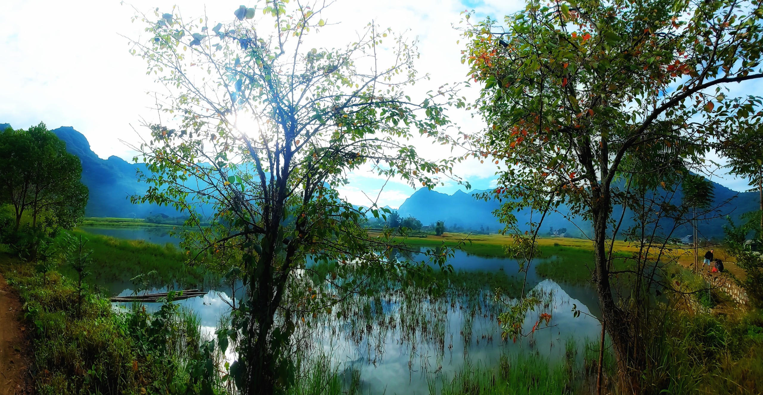 Từ rặng núi đến hàng cây, từ màu mây đến mặt nước gương soi lấp lánh, tất cả như không phải thật; giống như hiện ra chỉ để trêu đùa chúng tôi. Mọi người cứ luôn miệng thốt lên “Trời ơi, sao lại đẹp thế này”.