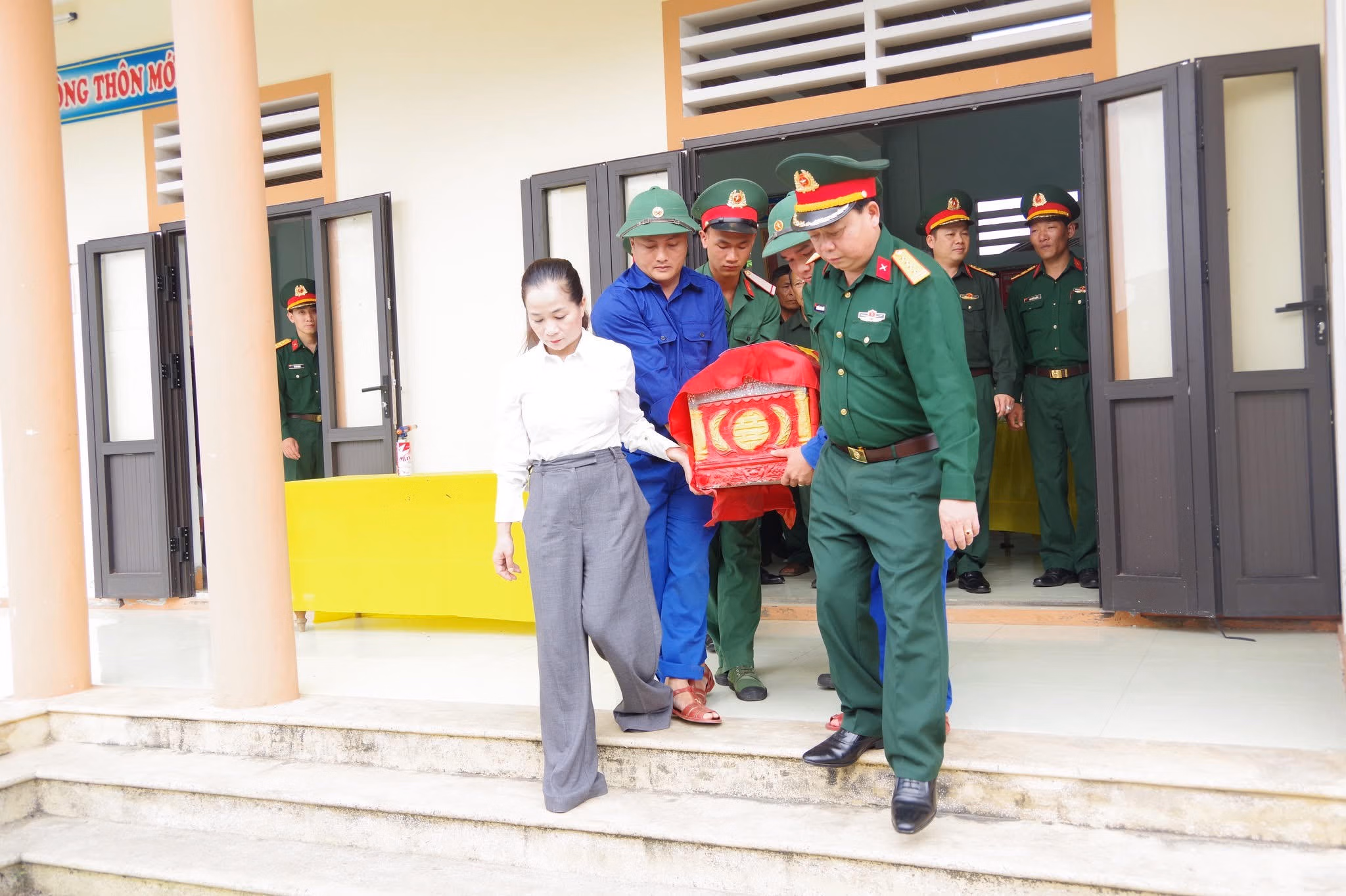 Chiều 24/3, Sư đoàn 968 (Quân khu 4) phối hợp với cấp ủy, chính quyền xã Hiếu Giang, tỉnh Quảng Trị tổ chức lễ di chuyển 2 hài cốt liệt sĩ vừa được tìm thấy tại điểm cao 402, thôn Bản Chùa, về an táng tại Nghĩa trang liệt sĩ Cam Tuyền.
