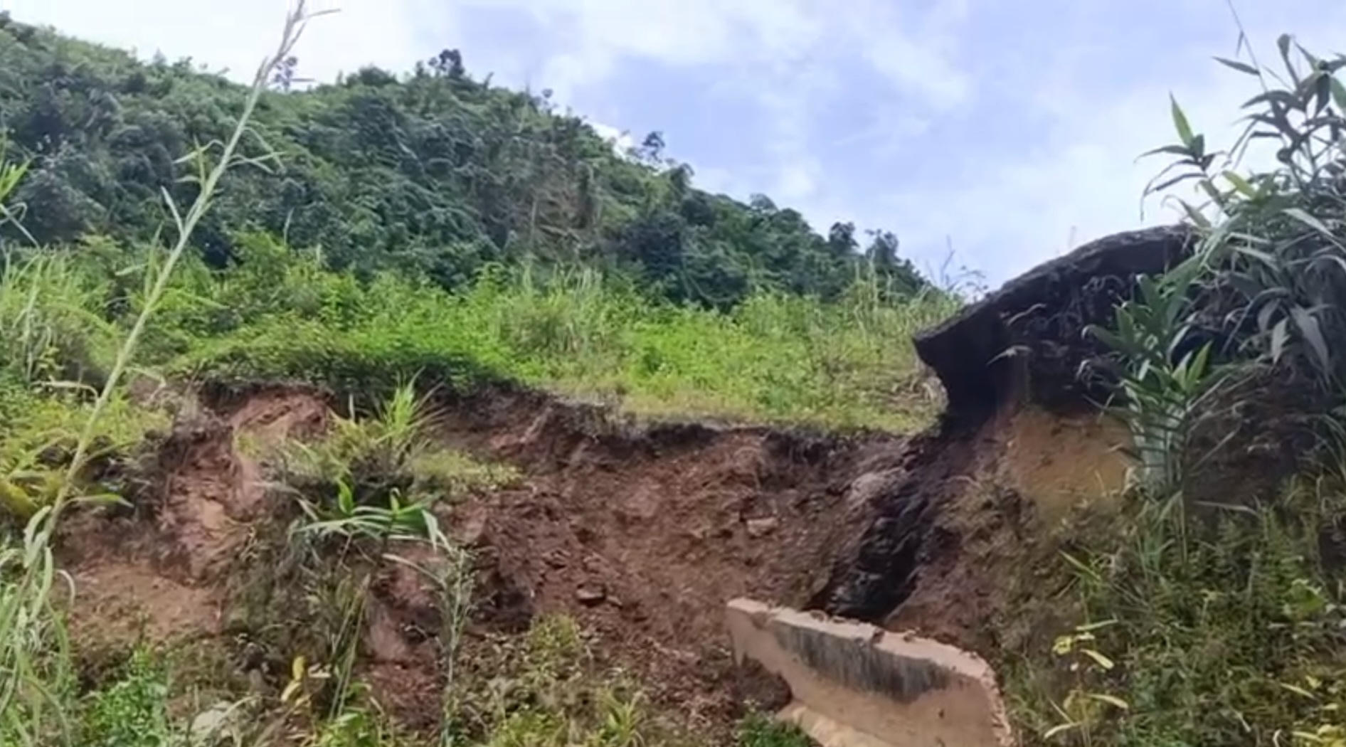 Đất đá sạt trượt uy hiếp tính mạng và tài sản của trường tiểu hoạc và THCS Hồng Ca. Ảnh: CTV. |