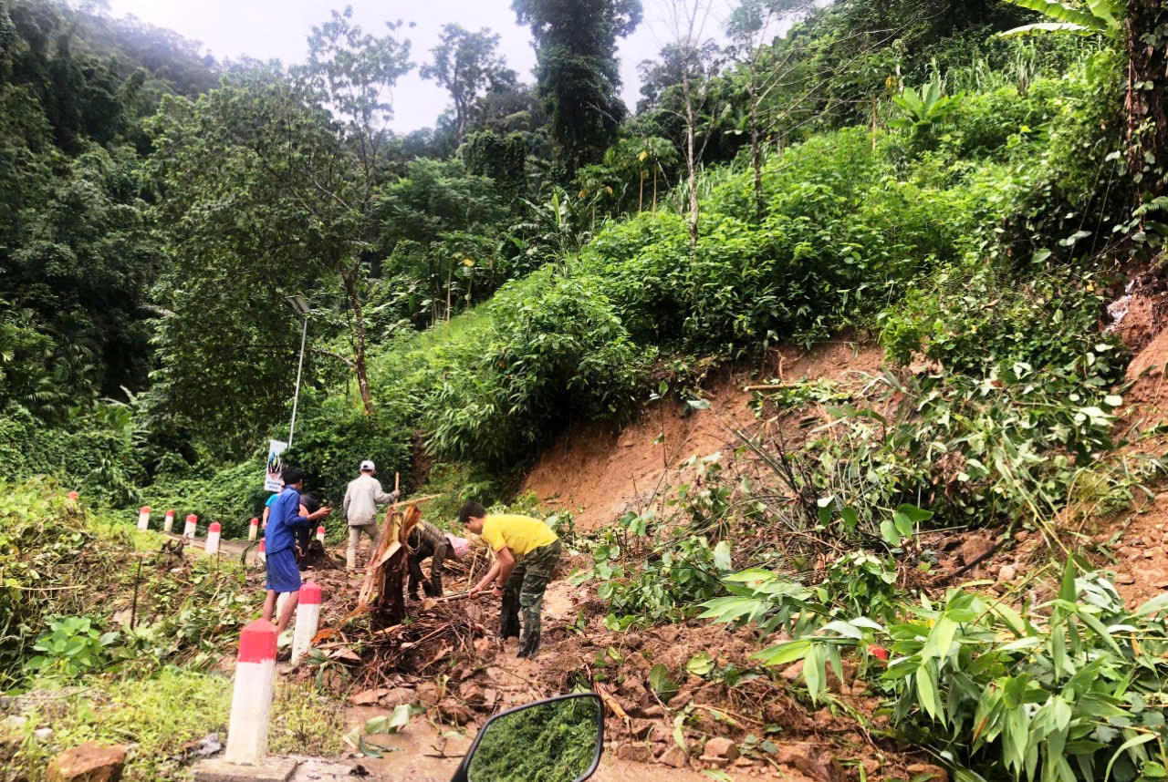 Mưa lớn khiến một số trục đường ĐH trên địa bàn huyện Nam Trà My bị sạt lở. Địa phương đang chỉ đạo lực lượng tại chỗ tiến hành giải phóng đất đá để đảm bảo lưu thông. |