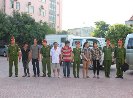 6 đối tượng bị bắt gồm: Võ Hữu Hùng (SB 1982, trú tại huyện Đô Lương) bị công an tỉnh Nghệ An truy nã từ tháng 12/2014 về tội trộm cắp tài sản; Nguyễn Đình Bình (SN 1984, trú tại huyện Thanh Chương) bị công an Nghệ An truy nã về tội cố ý gây thương tích từ năm 2010; Lê Thị Thủy (SN 1969, trú tại huyện Quỳnh Lưu) bị truy nã về tội lạm dụng tín nhiệm chiếm đoạt tài sản từ năm 2008.