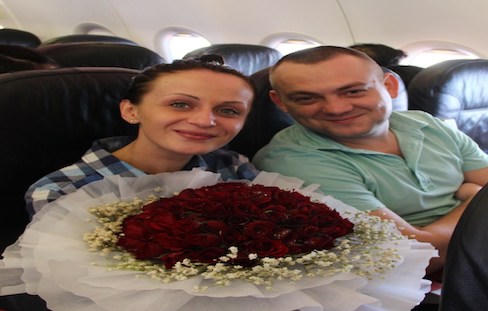 Bó hồng 100 bông rực rỡ đã thuộc về chị Sorokoumoca Valentina đến từ nước Nga. Chia sẻ với mọi người khi ôm bó hoa thơm ngát trong tay, chị nói: “Đến thăm Việt Nam, tôi rất ấn tượng với cảnh đẹp và con người nơi đây. Ai cũng thân thiện. Hôm nay đi máy bay tôi còn được tặng hoa, mà lại được tặng đến những 100 bông, thực sự quá hạnh phúc”.