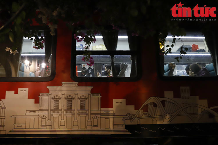 Trên tàu trưng bày các tác phẩm của triển lãm Chuyển động ngoại biên với những sáng tác được gắn cố định lên mặt kính của các ô cửa sổ tàu. |