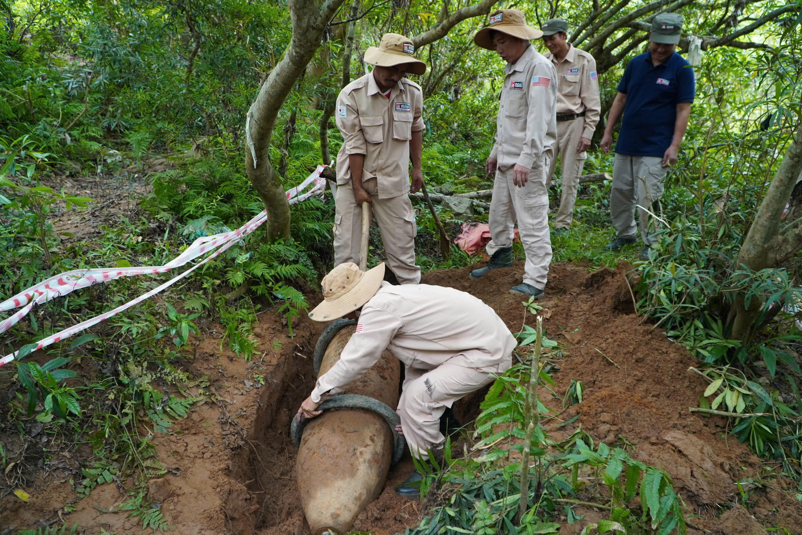 Ngay sau khi nhận được thông tin, đội xử lý bom mìn của tổ chức MAG đã có mặt tại hiện trường.