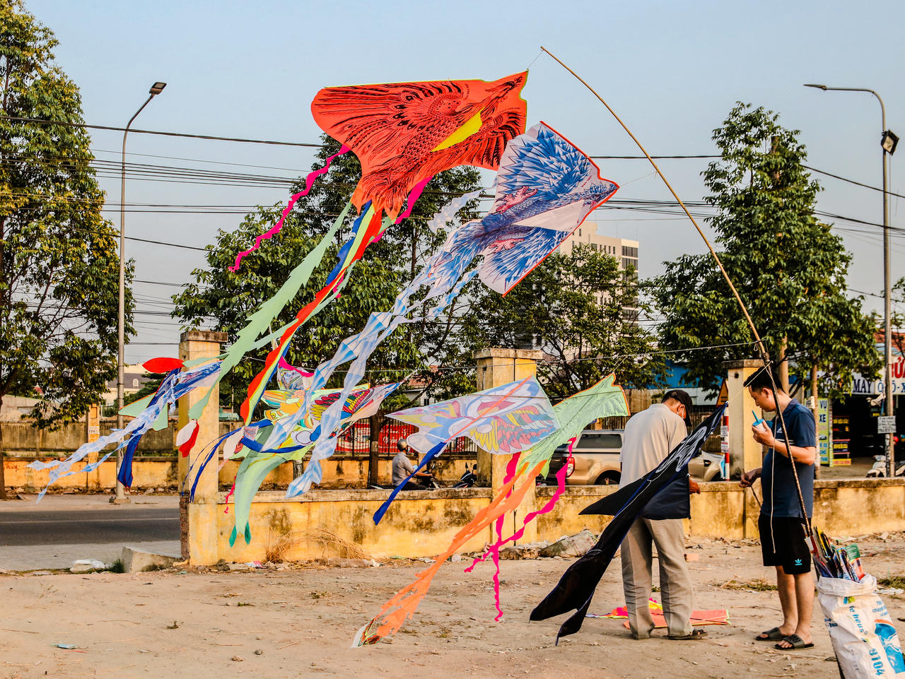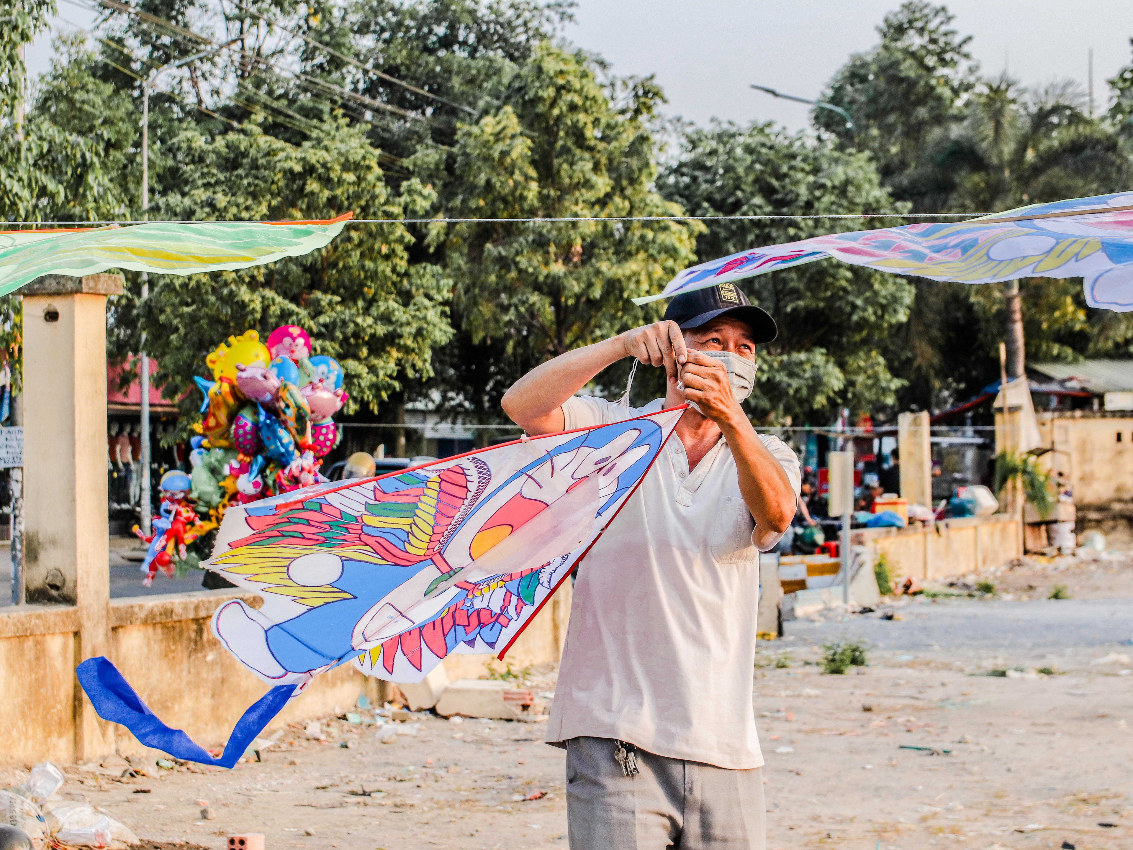 Diều được bày bán với nhiều màu sắc, hình thù và kích cỡ.