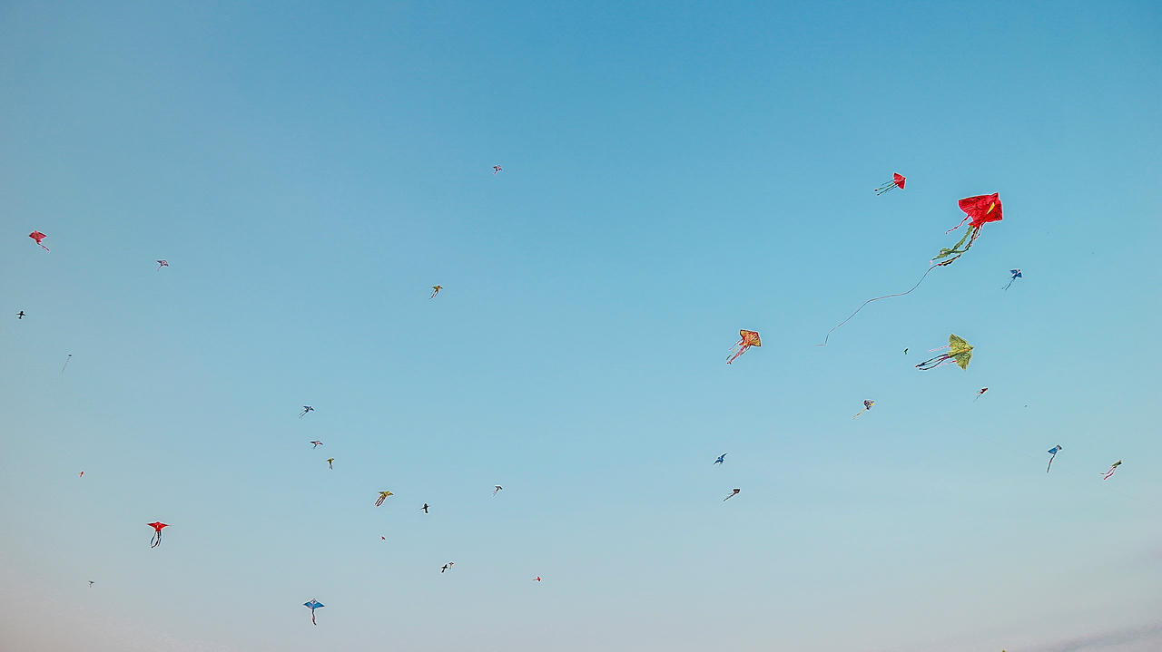 Một bầu trời đa sắc màu được tạo nên bởi những cánh diều đủ màu sắc.