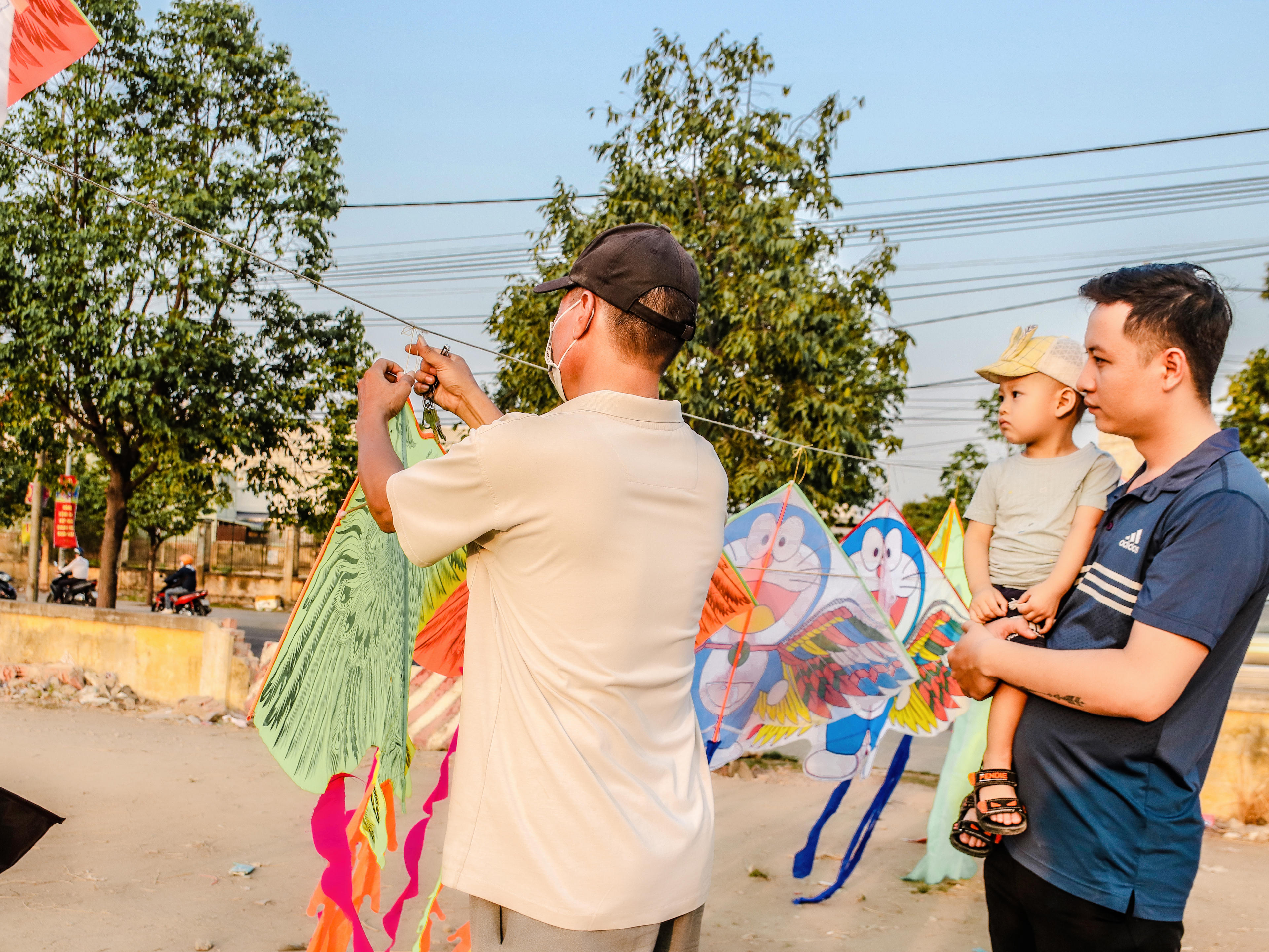 Giờ đây, nhiều ông bố không phải nhọc công làm diều cho con trẻ nữa vì diều được bán sẵn, đẹp mà giá lại phải chăng.