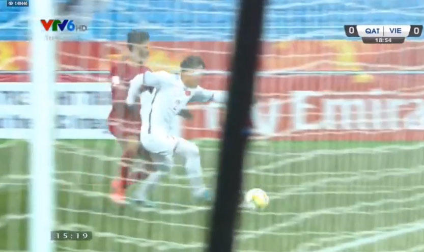 69'. U23Việt Nam được hưởng phạt gián tiếp sau khi trọng tài phạt lỗi thủ môn Qatar sau pha bắt đường chuyền về của đồng đội. Tuy nhiên, xà ngang khung thành đã từ chối bàn thắng của U23 Việt Nam sau pha dàn xếp đá phạt rất đẹp của U23 Việt Nam.