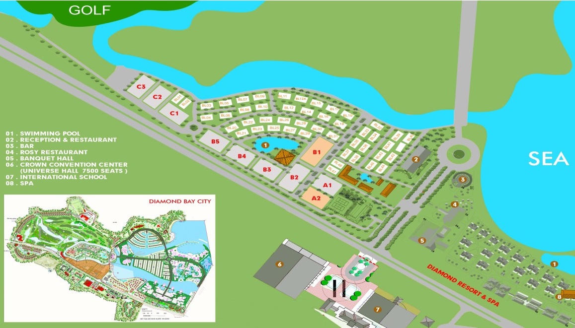 Diamond Bay Condotel Resort là sự kết tinh của các loại hình nghỉ dưỡng thế giới, được Tập đoàn Hoàn Cầu tâm huyết đầu tư trở thành một thiên đường du lịch giải trí đáng mong chờ nhất năm 2016. Dự án hội tụ hàng trăm các tiện ích đẳng cấp như khu trung tâm thương mại, sân tập thể thao, hồ bơi ngoài trời, spa, bệnh viện quốc tế, trường học quốc tế, khu vui chơi giải trí, công viên nhạc nước, khu tổ chức tiệc ngoài trời, công viên tiểu khu, vườn dạo…
