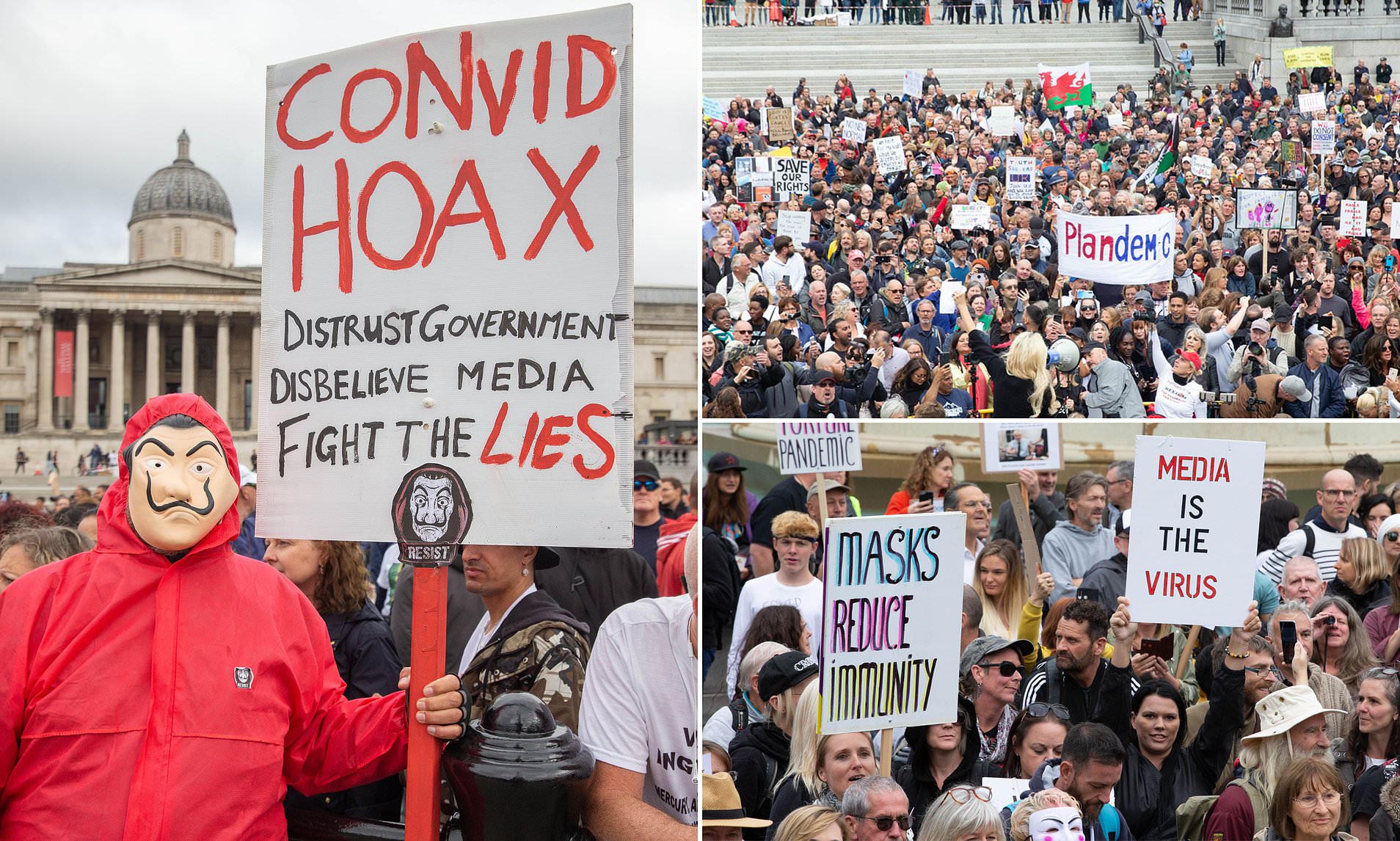 Các nhóm biểu tình này chỉ trích Tổ chức Y tế thế giới WHO, tỉ phú Bill Gates, và chính quyền Anh. Họ giăng biểu ngữ kêu gọi chấm dứt hạn chế di chuyển cũng như quy định đeo khẩu trang. Guardian cho biết nhiều biểu ngữ tố cáo virus corona là "trò lừa đảo", "lừa bịp".
