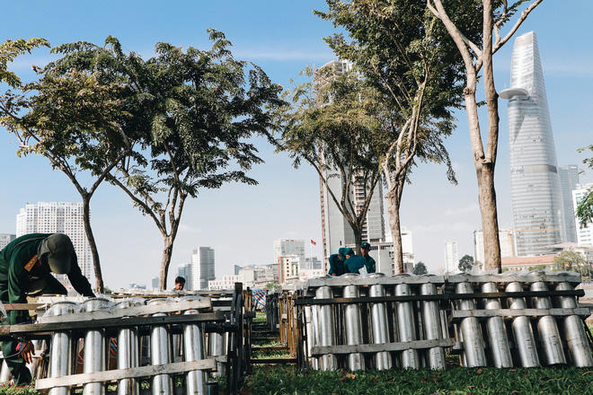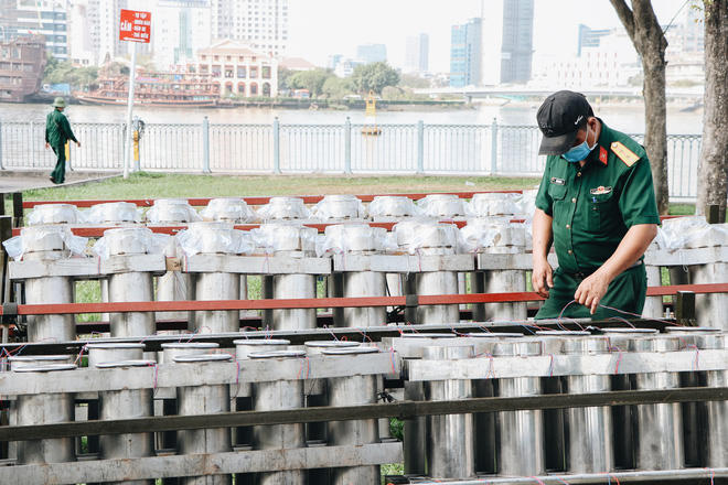 Có tổng cộng 2.300 quả pháo tầm cao, 8.500 quả tầm thấp và 7.700 quả pháo hỏa thuật đã được đưa vào nòng, kết nối nguồn điện đến trung tâm chỉ huy, chờ đến giờ "khai hoả", phục vụ người dân TP HCM chiêm ngưỡng.