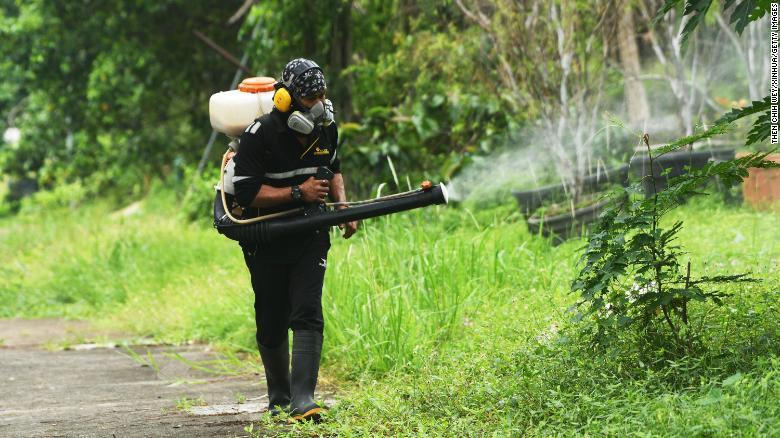 Nhân viên phun thuốc diệt muỗi tại Singapore tháng 7/2021. Ảnh: CNN
