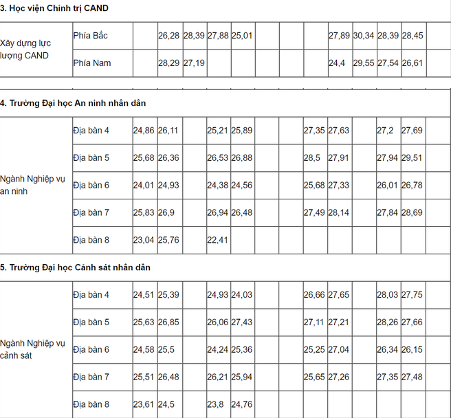 Điểm chuẩn 8 trường công an, ngành cao nhất lên tới 30,34 điểm