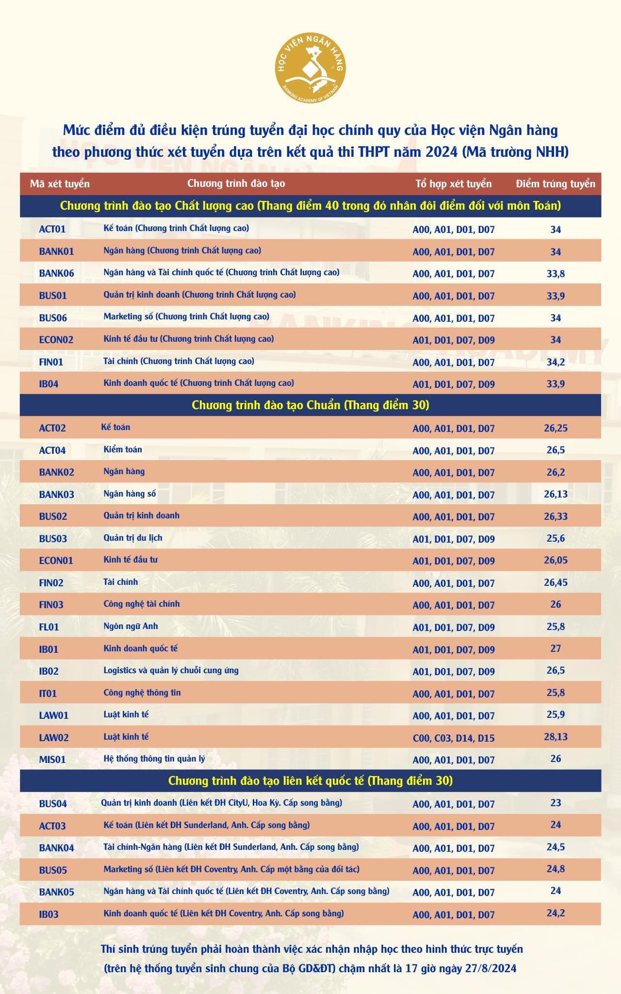 | Điểm chuẩn của Học viện Ngân hàng |