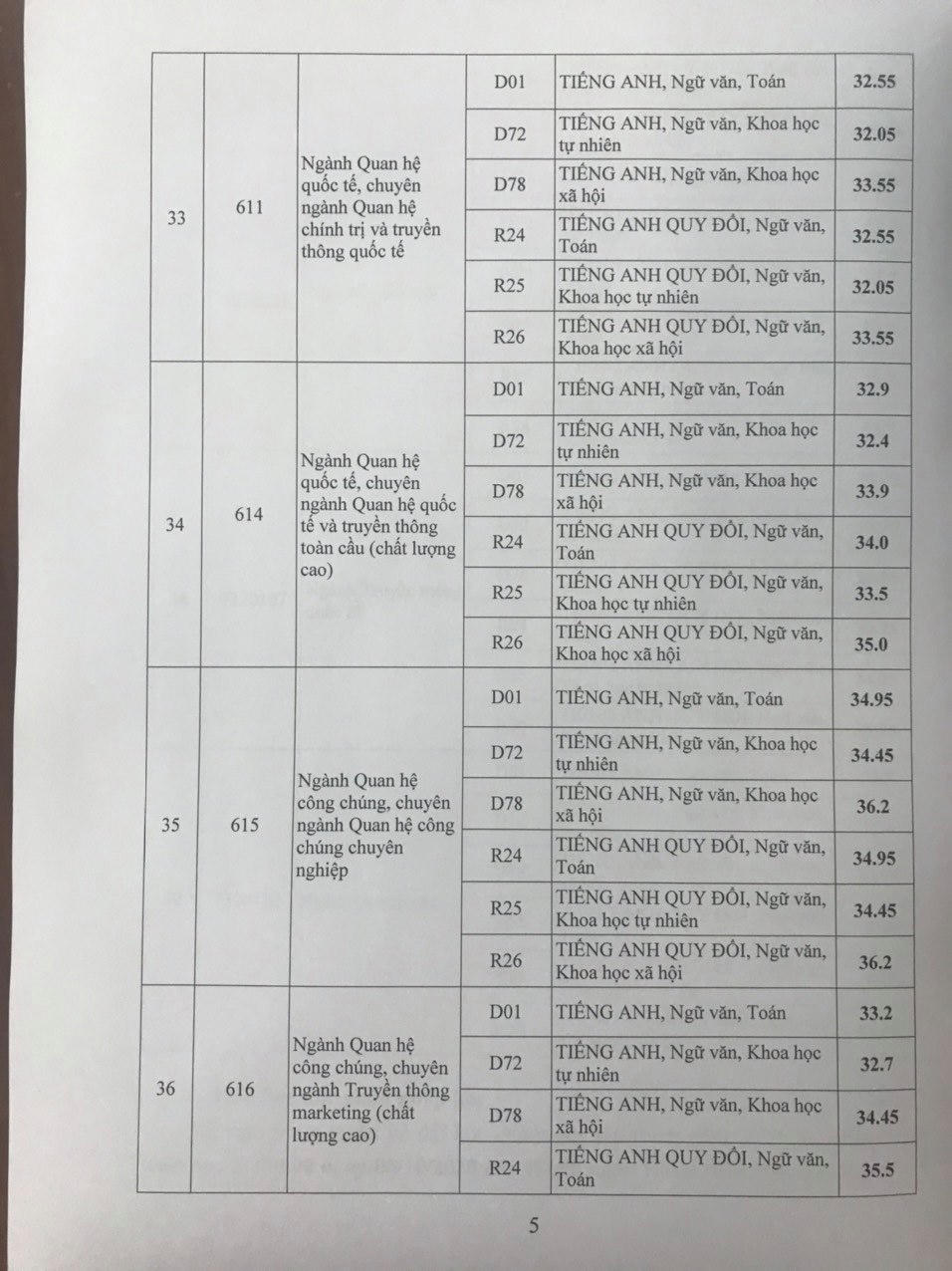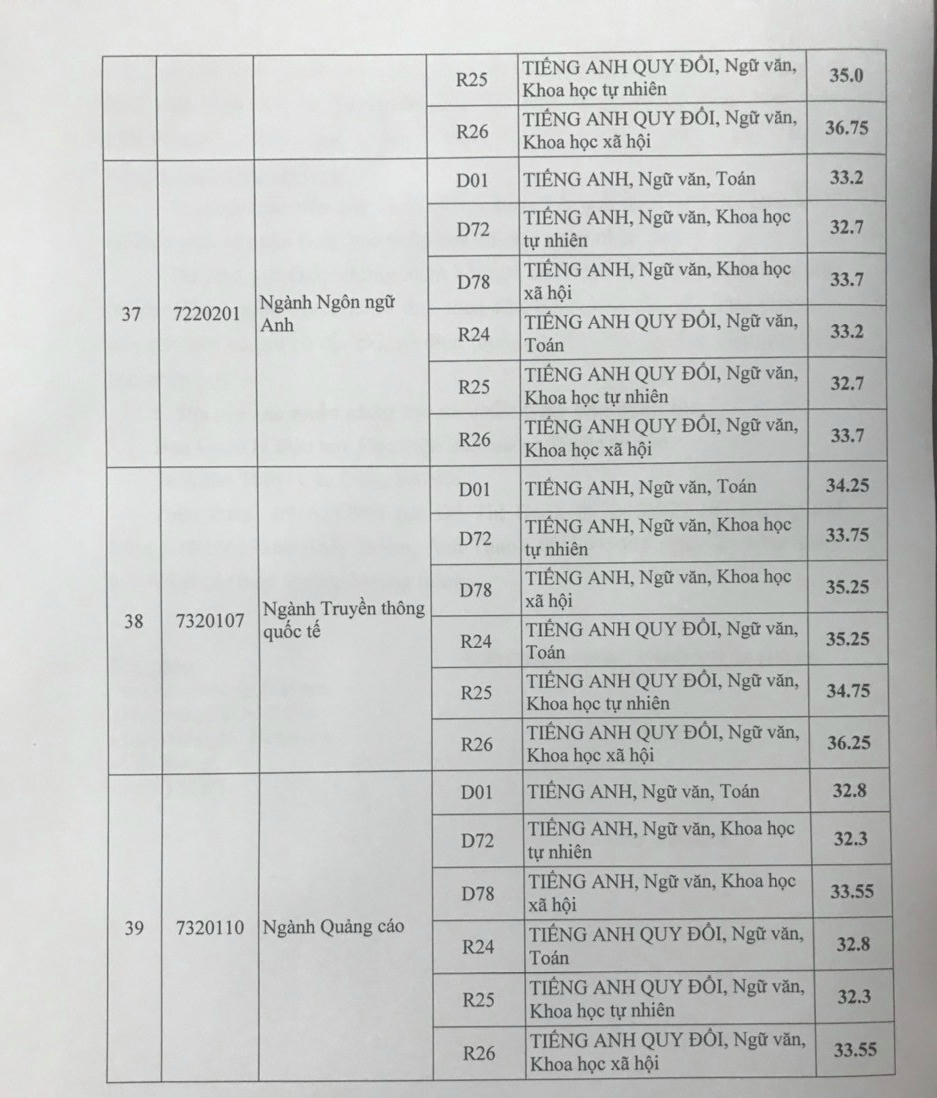 Ngành quan hệ công chúng, chuyên ngành quan hệ công chúng chuyên nghiệp với môn Tiếng Anh hệ số 2 cũng có điểm chuẩn lên đến 36,2 điểm.
