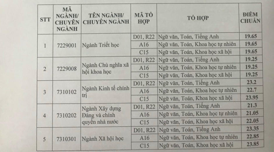 Điểm chuẩn của Học viện Báo chí và Tuyên truyền năm 2020 tăng mạnh, từ 2-4 điểm mỗi khoa, ngành. Nếu như năm 2019, khoa Xã Hội Học của trường lấy tổ hợp khối D là 19,65 điểm thì năm 2020 điểm chuẩn của khoa đã tăng lên 23,35 điểm.