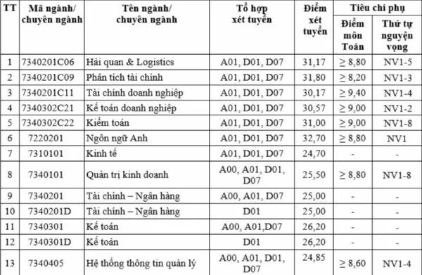 Điểm chuẩn Học viện Tài chính