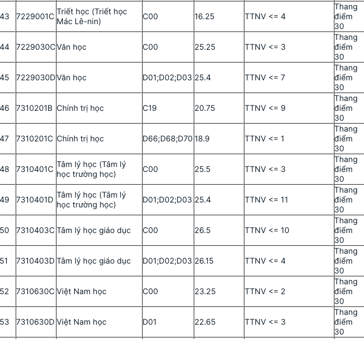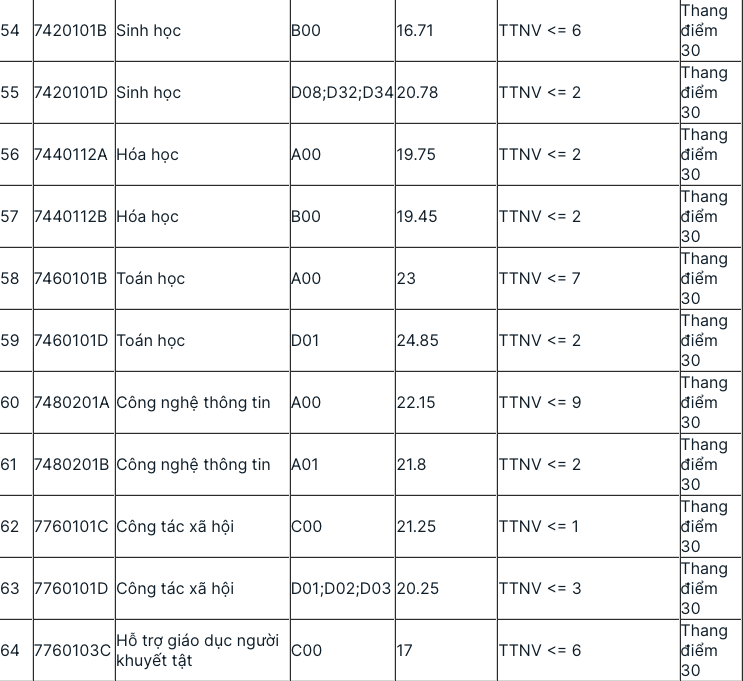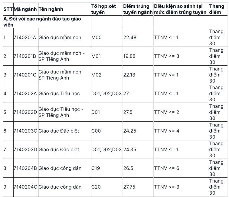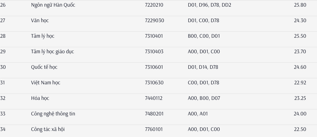 Cụ thể, điểm trúng tuyển từng ngành như sau: