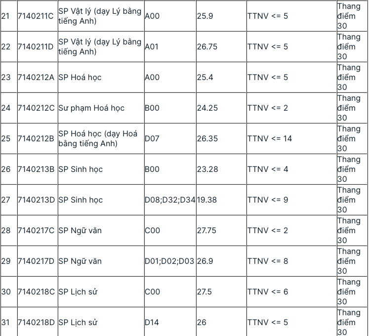 Hội đồng tuyển sinh Trường Đại học Sư phạm TP HCM công bố điểm chuẩn trúng tuyển theo phương thức xét tuyển dựa vào điểm thi tốt nghiệp THPT năm 2021. Với các ngành đào tạo giáo viên, điểm chuẩn cao nhất là ngành Sư phạm Tiếng Anh với 27,15 điểm; đối với các ngành đào tạo khác, ngành Ngôn ngữ Anh có điểm chuẩn cao nhất là 26 điểm.