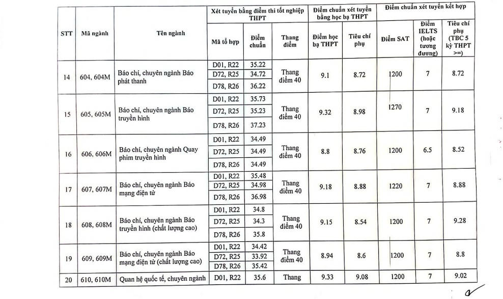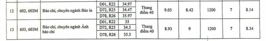 Điểm chuẩn cụ thể của từng chuyên ngành Báo chí như sau: