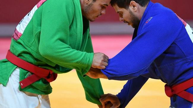 Hai tuyển thủ tham gia môn đấu vật Kurash. Ảnh: AFP