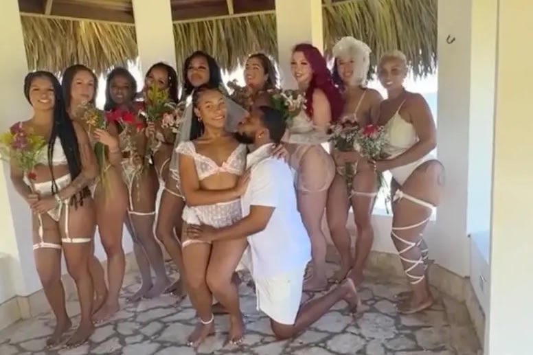 Trong đoạn video dài 9 giây của Lustin đăng trên TikTok, 9 cô dâu cầm hoa, đi vòng quanh chú rể. Họ đều mặc những bộ đồ lót màu trắng gợi cảm, trong khi Lustin mặc quần short và áo sơ mi trắng.