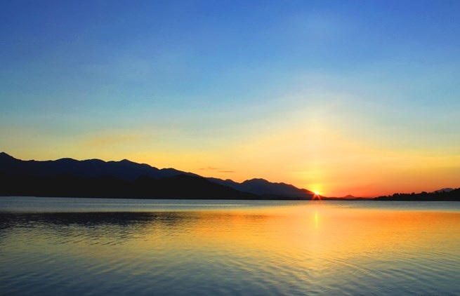 Hoàng hôn ở hồ núi Cốc cũng là trải nghiệm đáng thử khi ánh chiều vàng ruộm bao phủ lên các đảo đá: đảo nổi, đảo chìm thoắt ẩn, thoắt hiện đầy kỳ thú với nhiều tên gọi rất gần gụi: Đảo Cò, đảo Dê, đảo Khỉ, đảo Khuynh Diệp, đảo Trám…