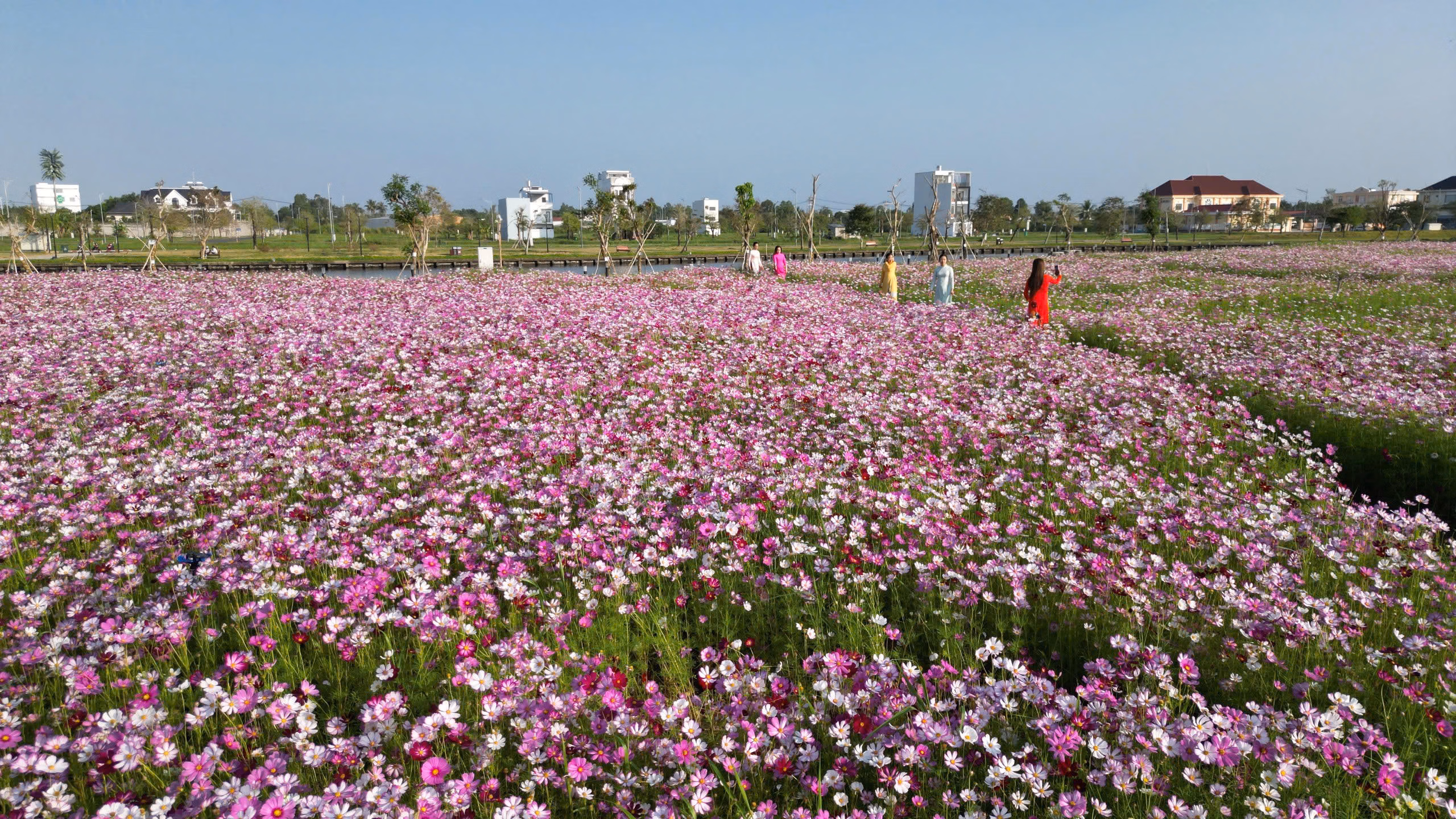 Giữa không gian đô thị hiện đại, những thảm hoa trải dài ngút ngàn mang đến cảm giác thư thái, gần gũi thiên nhiên, giúp người dân tạm gác lại nhịp sống hối hả để tận hưởng trọn vẹn không khí xuân.