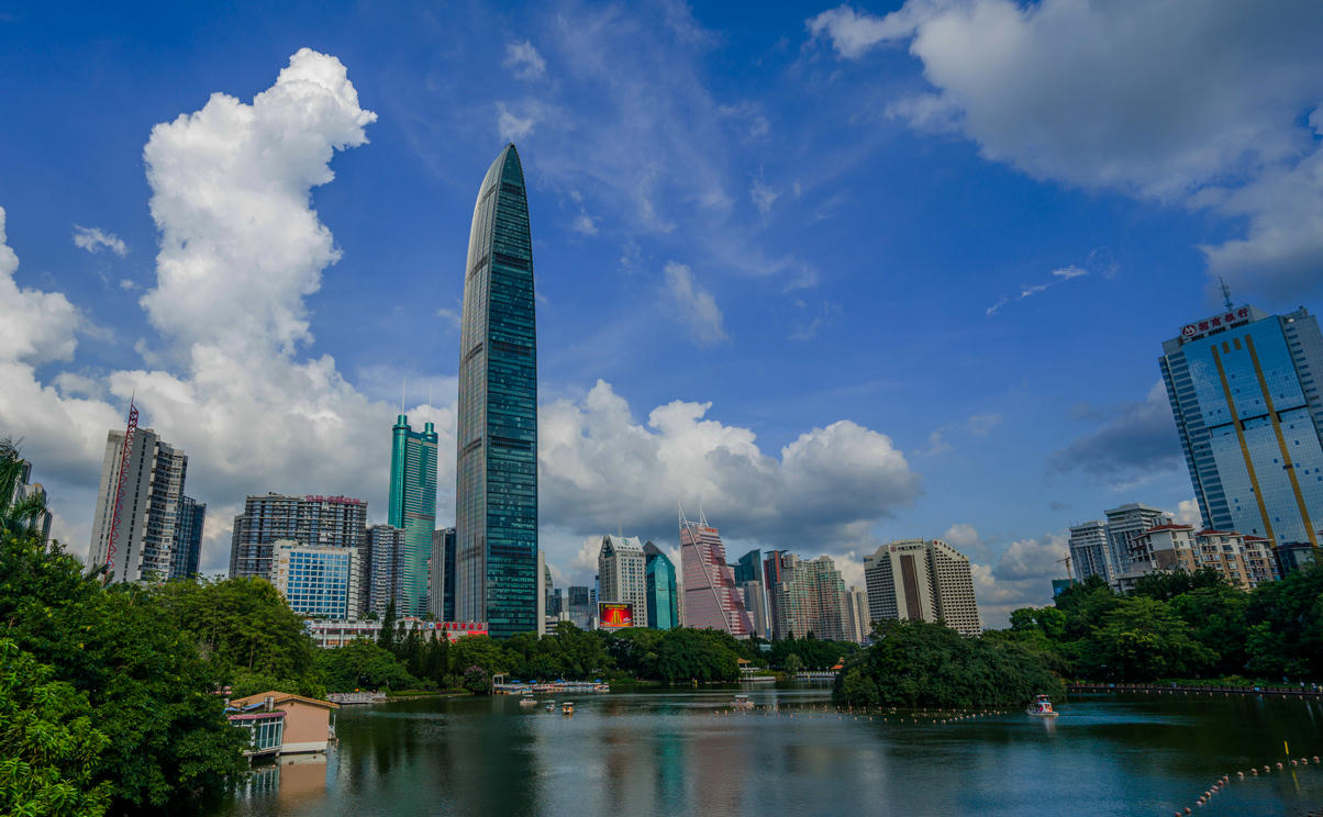 Tháp Tài chính KK100 nổi bật tại khu trung tâm tài chính thành phố Thâm Quyến, tỉnh Quảng Đông, Trung Quốc. |