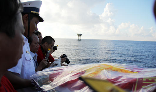 Nguyễn Trung Kiên, thành viên đoàn kiều bào về từ Hàn Quốc thuật lại khi đưa những tấm pin mặt trời, giàn rau xanh và chiếc máy hút độ ẩm tạo nước ngọt lên được cột mốc chủ quyền cheo leo ở thềm lục địa phía Nam: "Phải mất đến 2 tiếng đồng hồ, xuồng công tác đi vào rồi lại đi ra đến 4 lần mới cập mạn được chân nhà giàn, và những món quà ấy mới “bay” lên nhà giàn được đầy đủ và an toàn.