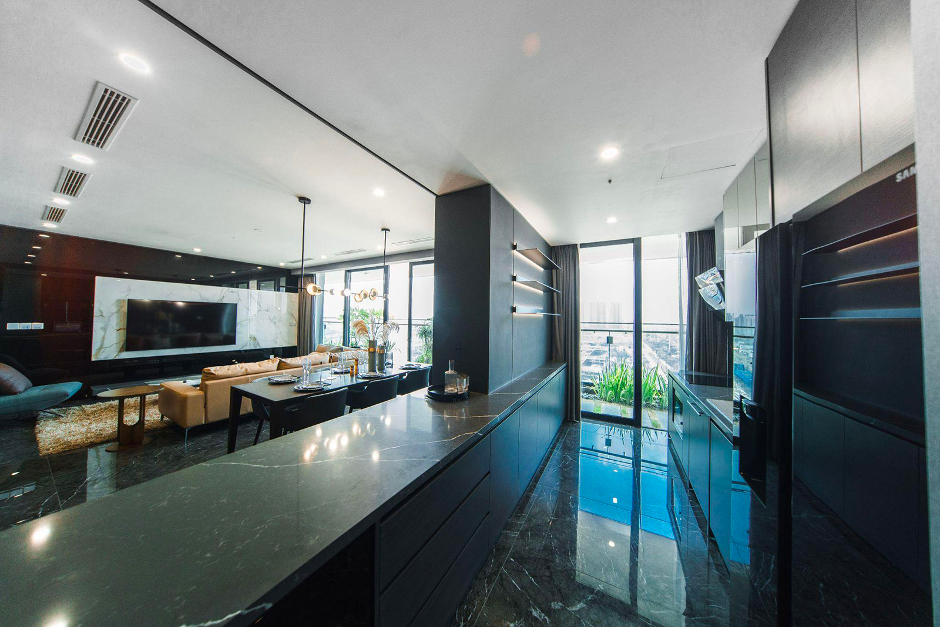 | Cùng với đó là hệ sinh thái Smart Living được nâng cấp bởi tính chất “đo ni đóng giày” cho từng không gian cao cấp như: Công nghệ “giấu bếp” bên dưới mặt ceramic cao cấp (có khả năng chống xước, mài mòn và khử khuẩn cao hơn đá tự nhiên); hệ thống rèm cửa cảm biến theo sắc độ đậm, nhạt của ánh nắng; hệ thống đèn spotlight với ánh sáng có CRI (chỉ số hoàn màu) cao nhất, mang đến tính trung thực nhất của đồ vật được chiếu sáng; hành lang giữa các căn Sky Villas được thiết kế theo tiêu chuẩn khách sạn 5 sao… |