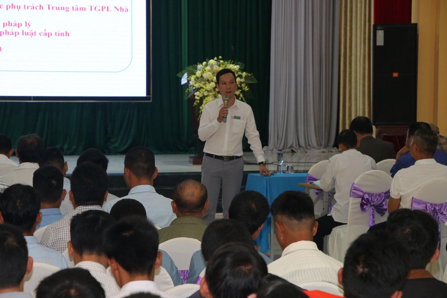 Cán bộ Trung tâm TGPL tỉnh Sơn La đang tuyên truyền, phổ biến trợ giúp pháp lý cho người dân. |