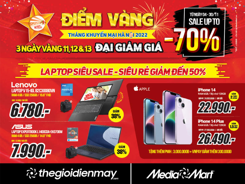 Điểm Vàng Tháng khuyến mại Hà Nội 2022, MediaMart giảm giá lên đến 70% toàn mặt hàng