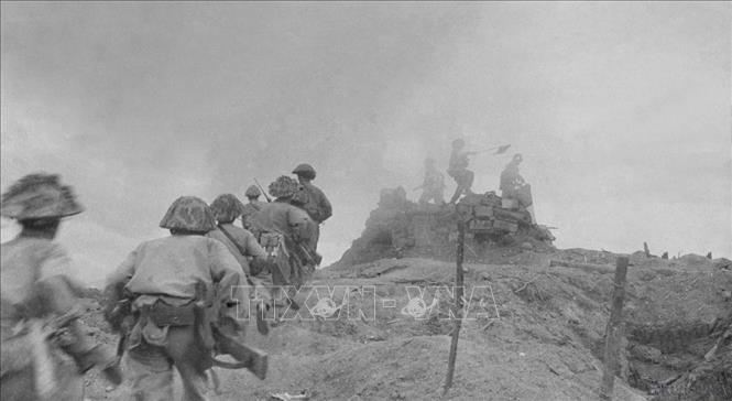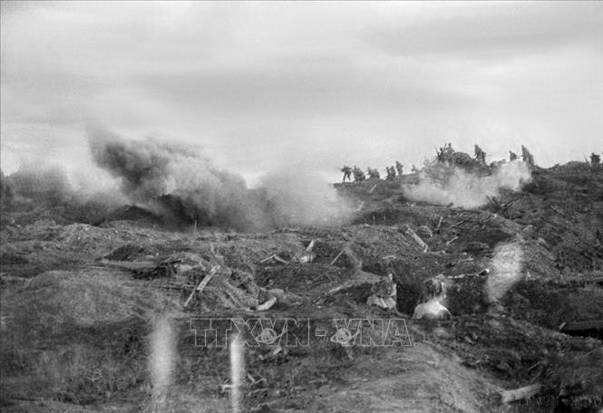 Các chiến sĩ xung kích của ta tấn công một vị trí của địch trên khu đồi C. Ảnh: Tư liệu TTXVN