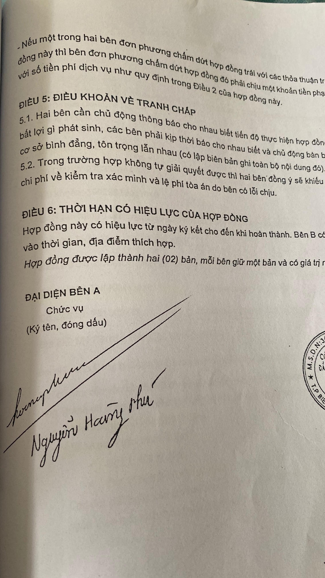 Để được vay tiền của THP, trước tiên Kim Oanh phải vượt qua “ải” mà “cò” đặt ra. Ngày 21/10/2019, Phú bắt Kim Oanh phải ký “hợp đồng dịch vụ môi giới” với mình. Theo Kim Oanh, trong hợp đồng này nội dung thật, giả lẫn lộn. Thật là điều khoản Phú sẽ “làm trung gian” (nói nôm na là “cò” - NV) và Kim Oanh phải trả cho Phú 5% số tiền vay được. Sau này khi được THP cho vay 350 tỷ, Kim Oanh đã lập tức chuyển cho Phú 17,5 tỷ (tương đương 5% của 350 tỷ đồng).