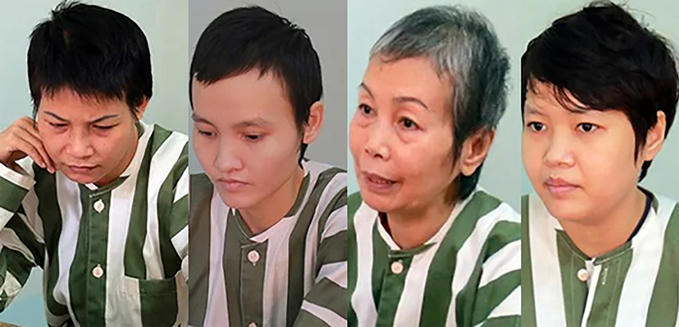 Các đối tượng trong vụ án gồm: Phạm Thị Thiên Hà (SN 1988, ngụ TP HCM), Nguyễn Ngọc Tâm Huyên (SN 1979, quê Quảng Ngãi), Lê Ngọc Phương Thảo (SN 1990, quê Tiền Giang), Trịnh Thị Hồng Hoa (SN 1953, mẹ của Hà).