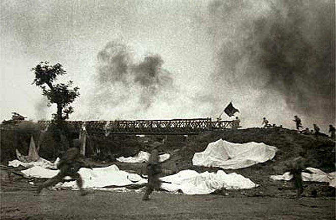 Từ dưới chiến hào, bộ đội Việt Minh vọt lên rất đông đi theo hàng dọc trên bờ hào rồi toả đi rất nhanh trên mặt đất, từng tổ ba hoặc bốn người. Tôi có cảm giác hình như đã mở chốt quả lựu đạn, chỉ chờ cơ hội tốt nhất thì sử dụng.