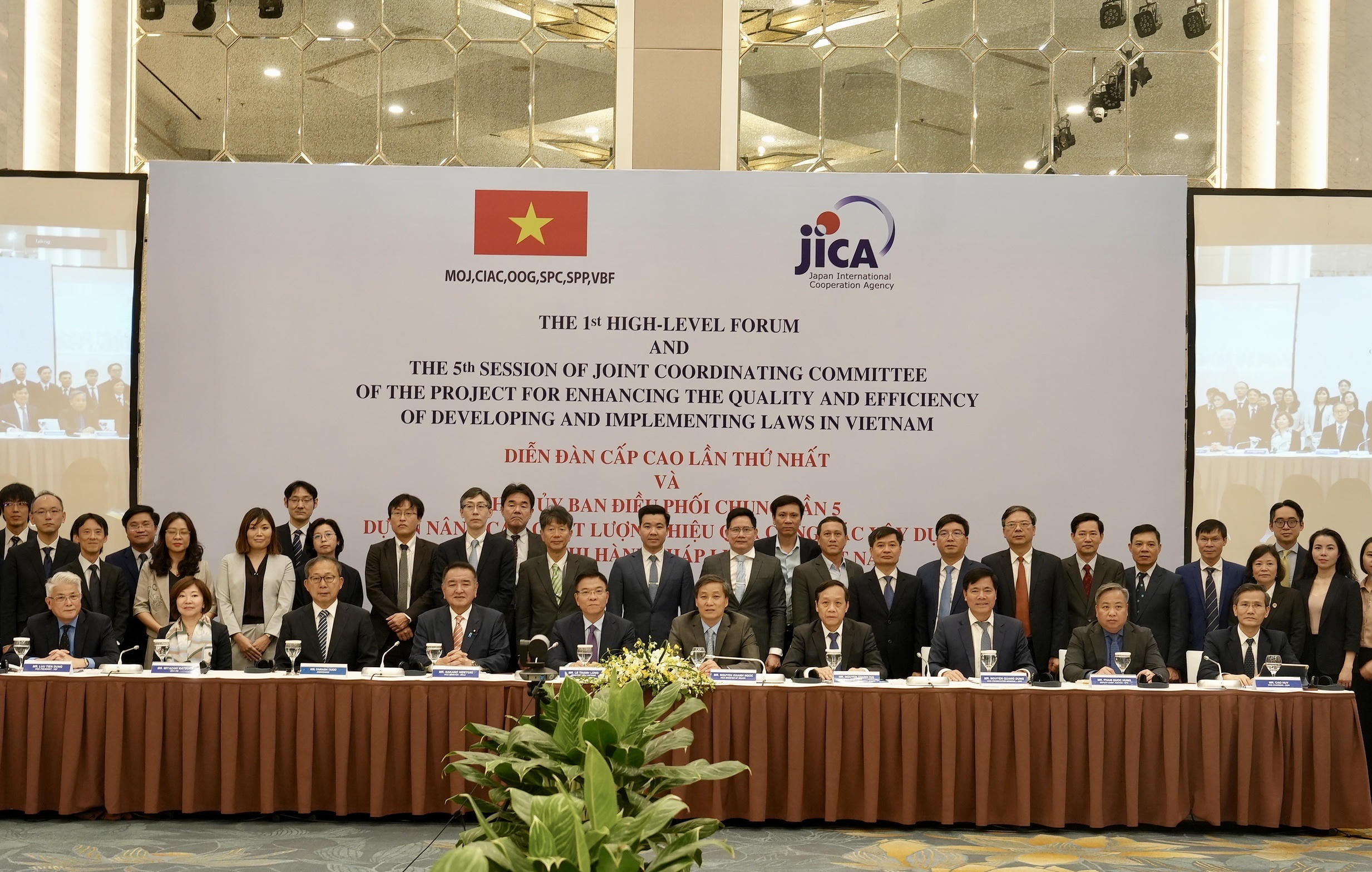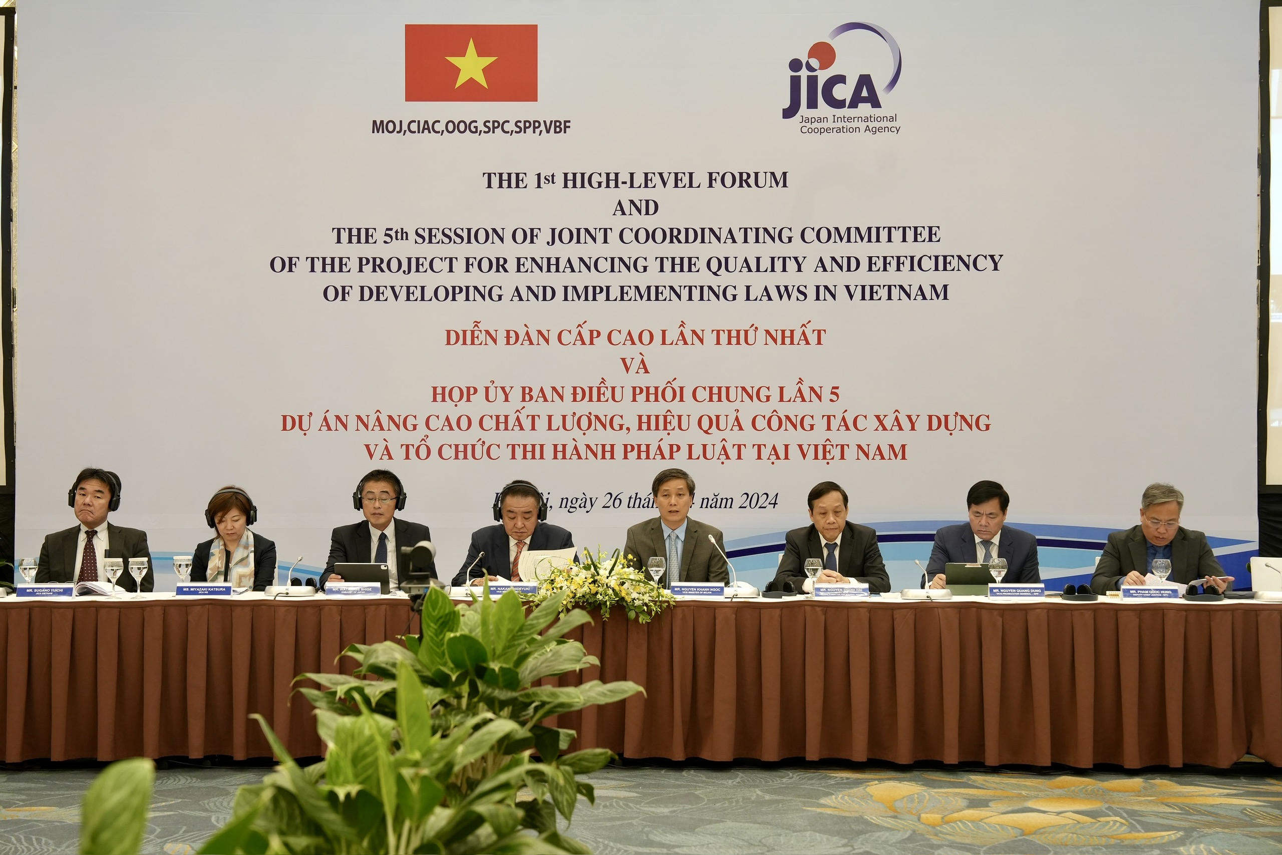 Bộ trưởng Bộ Tư pháp Lê Thành Long, Thứ trưởng Bộ Tư pháp Nhật Bản Nakado Hideyuki, Phó Chủ tịch JICA Nhật Bản MIYAZAKI Katsura và Đại sứ đặc mệnh toàn quyền Nhật Bản tại Việt Nam YAMADA Takio đã có bài phát biểu khai mạc tại Diễn đàn.