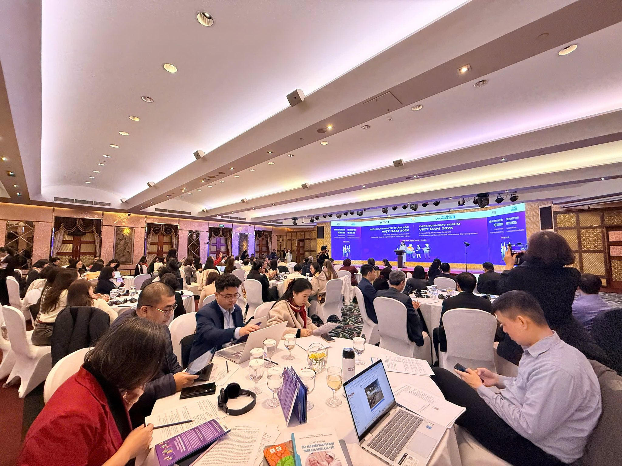 Sáng nay (26/1), Trong khuôn khổ các hoạt động thúc đẩy bình đẳng giới, chăm sóc gia đình và phát triển bền vững tại Việt Nam, Hội đồng Doanh nhân nữ Việt Nam (VWEC) thuộc Liên đoàn Thương mại và Công nghiệp Việt Nam (VCCI) và Cơ quan Liên Hợp Quốc về Bình đẳng giới và Trao quyền cho Phụ nữ (UN Women) đã đồng tổ chức Diễn đàn Kinh tế Chăm sóc Việt Nam 2026 với chủ đề “Đổi mới mô hình kinh doanh – Thúc đẩy doanh nghiệp phát triển bền vững”.